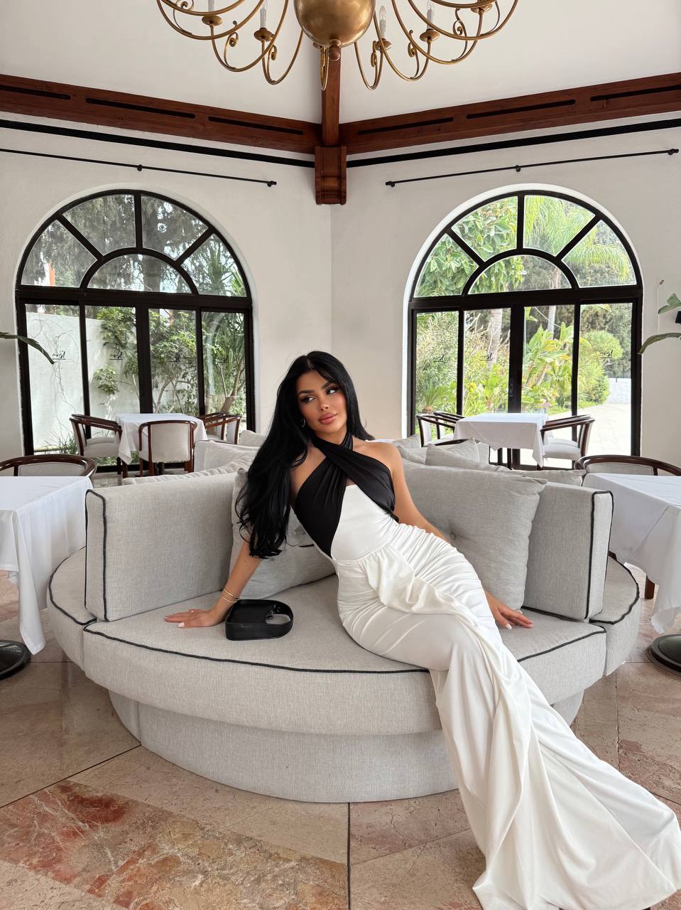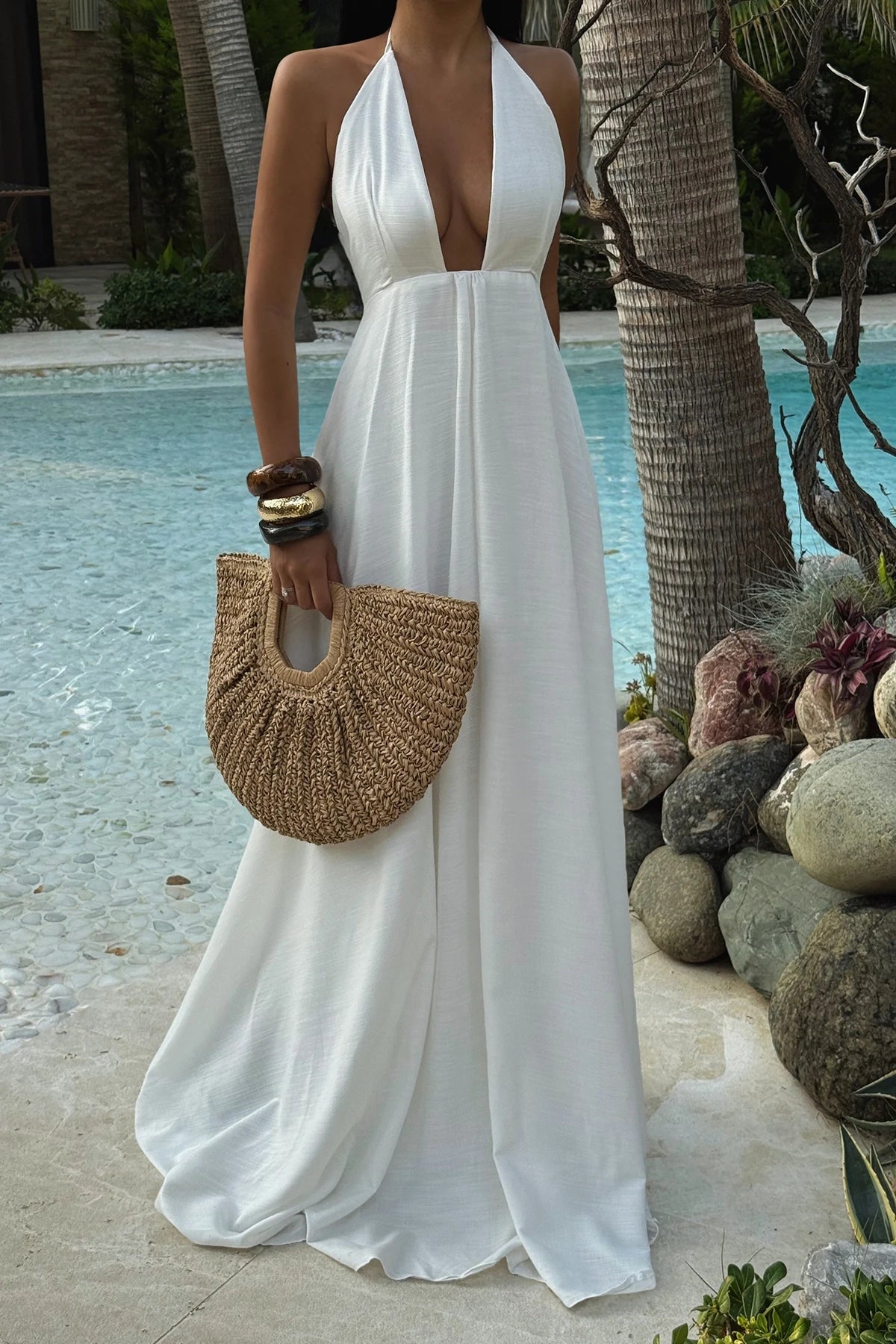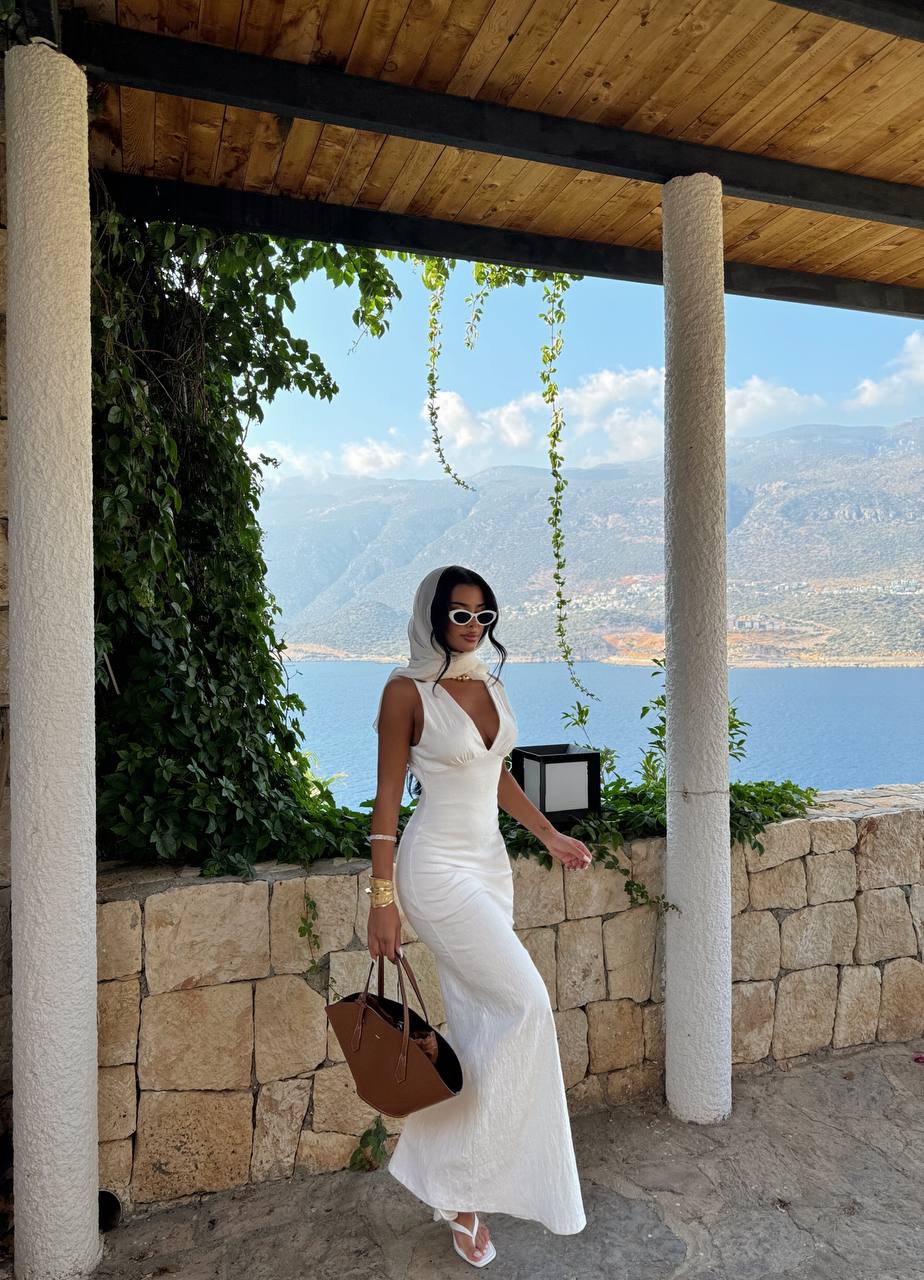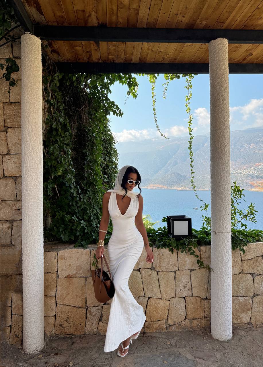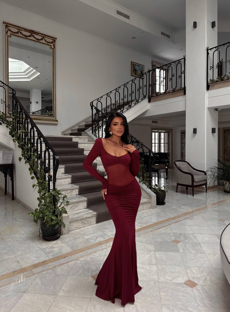 V-Neck Detail Cropped Blouse and Maxi Skirt