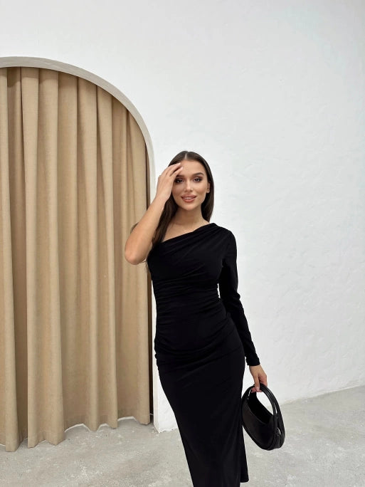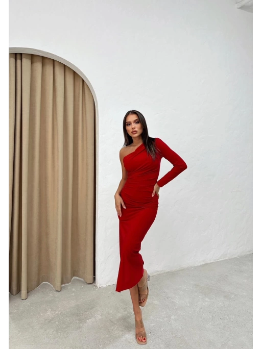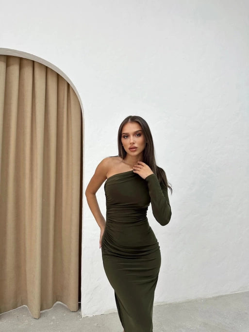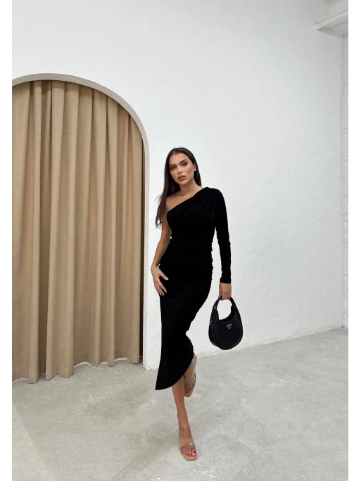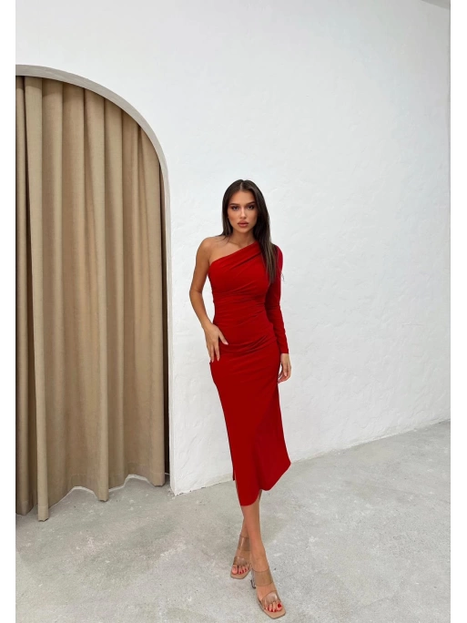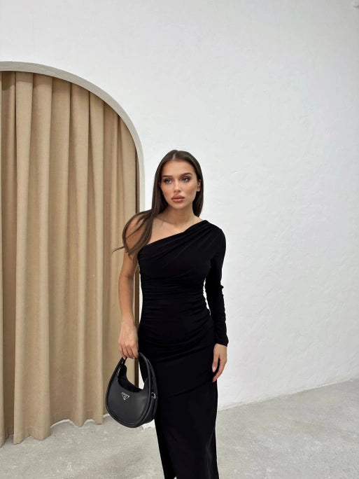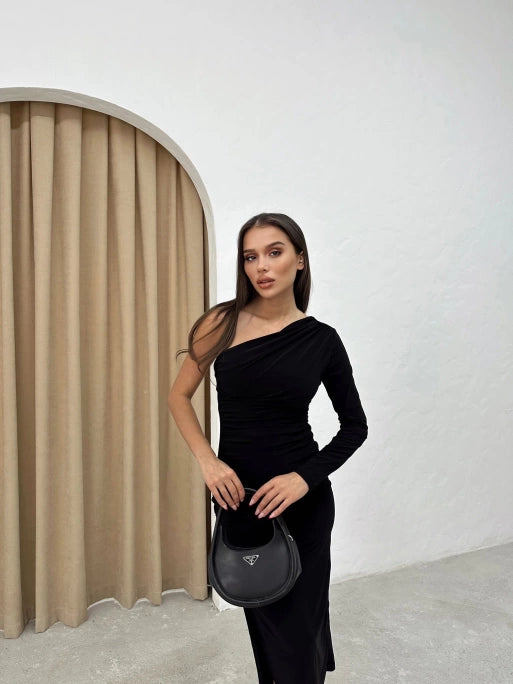 Look the best dressed for any occasion in this one sleeve midi dress. Brought to you with a slit and one sleeve design, this midi dress is a must-have. Pair with clear heels and gold accessories for a weekend-worthy look.