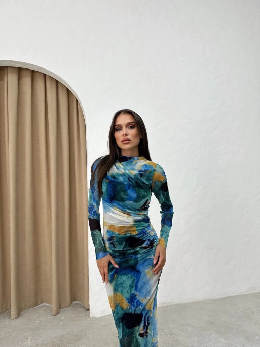 You won't have to sacrifice comfort for style with this multi-colour pattern midi dress. Brought to you in multi colour pattern with long sleeves and a figure-hugging midi length, how can you say no? Perfect for dressing up, this midi dress is sure to be a staple in your new season wardrobe. Style with knee length heeled boots and gold accessories for a fool-proof finish.