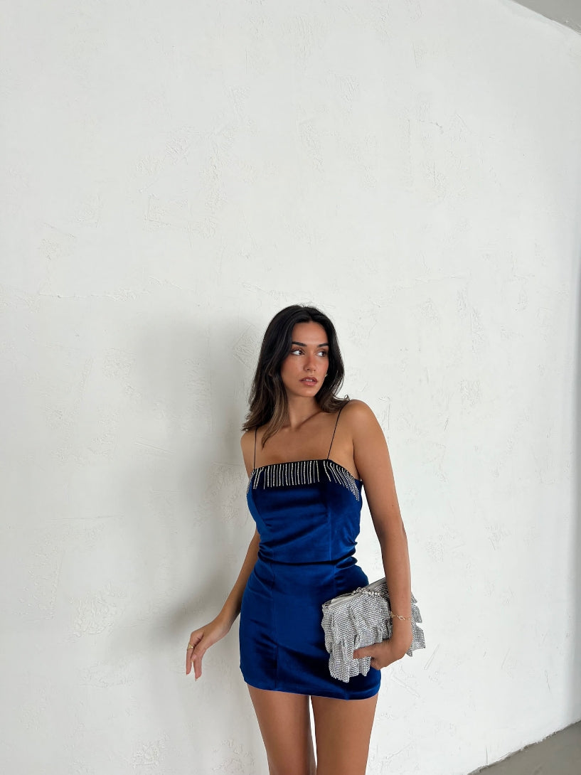 This mini dress is perfect for your occasion wardrobe. Featuring a drape design, wear with strappy heels for a look that we are loving.
