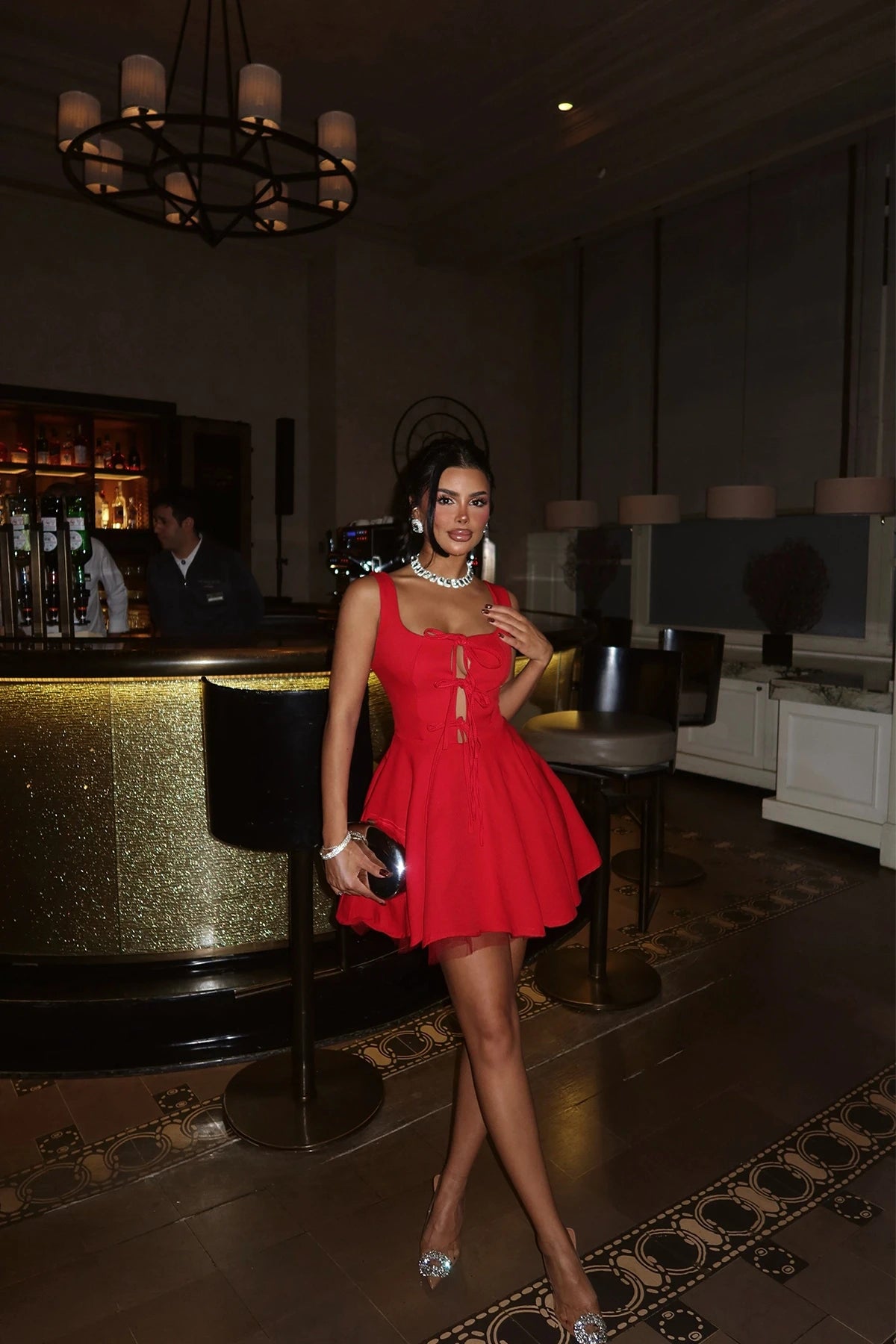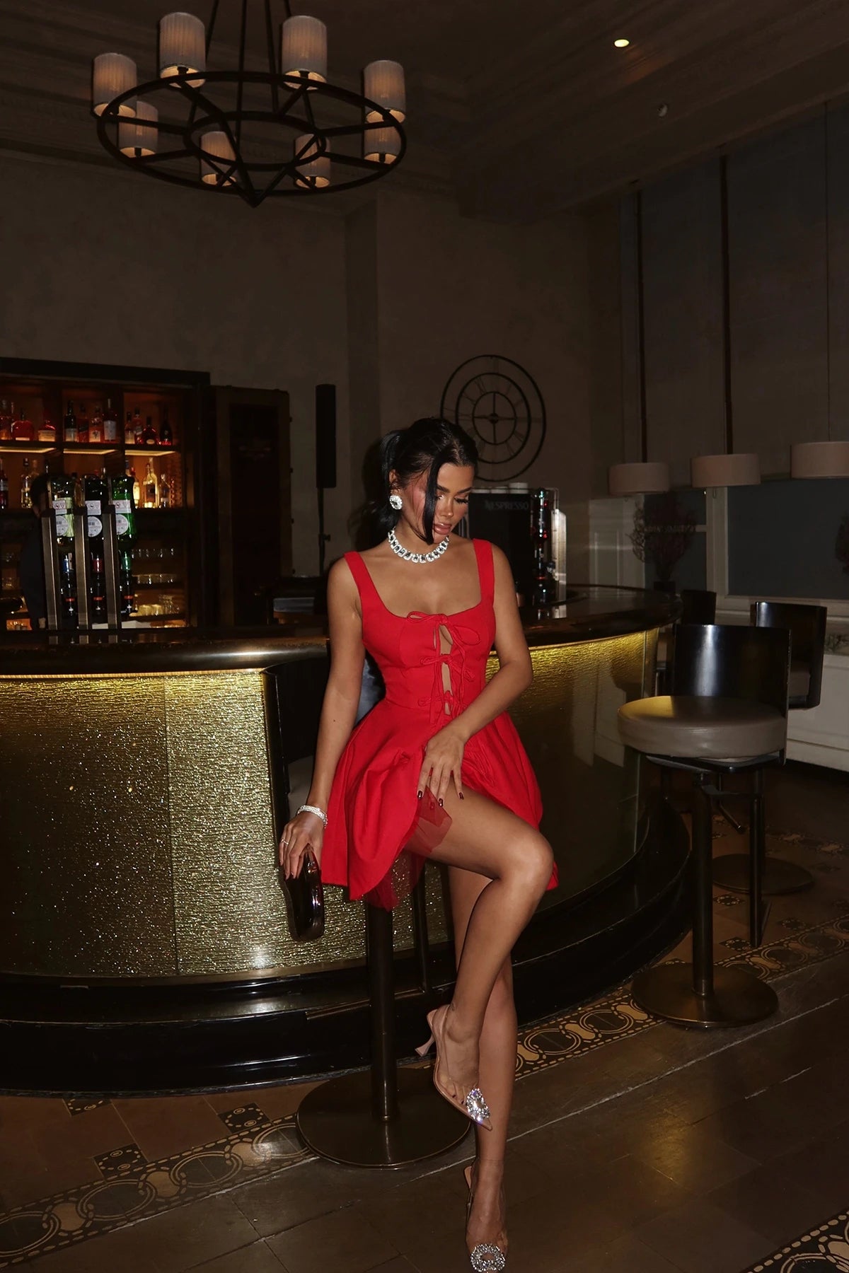 This strap back detail mini dress is here to solve all of your weekend wardrobe dilemmas. Made with strap detailing and a flattering mini fit, how can you resist? Style this shape dress with clear strap heels and gold accessories for a look that is sure to steal the stares.