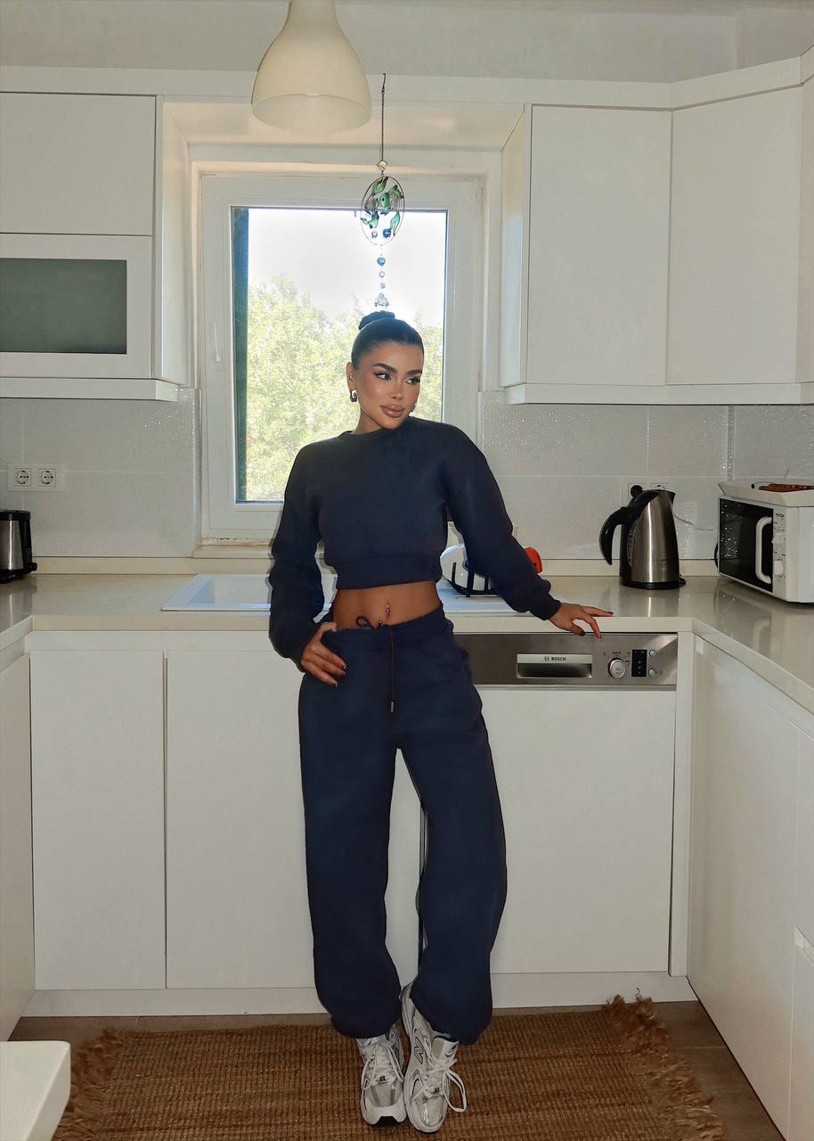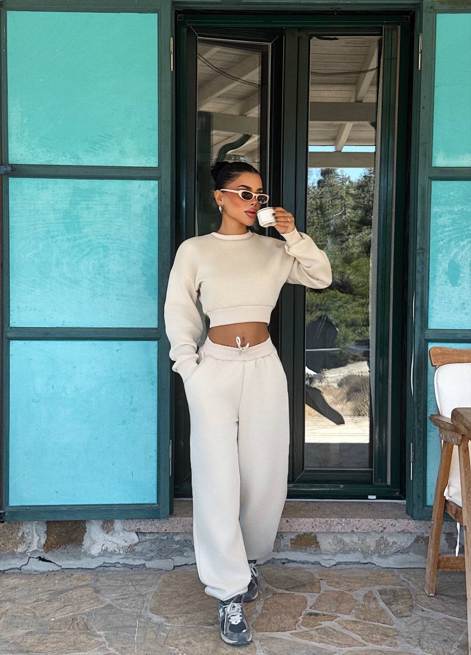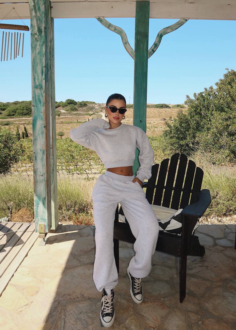 Cropped Sweatshirt and Sweatpants Set