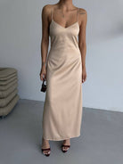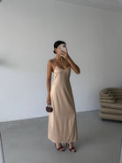 Keep it chic and elegant in this satin midaxi dress. Crafted from satin material with a midaxi dress style for a sleek, sophisticated look. Team with some strappy stiletto heels and gold hoops to finish the look.