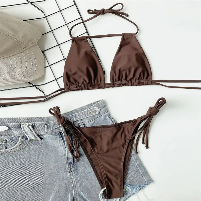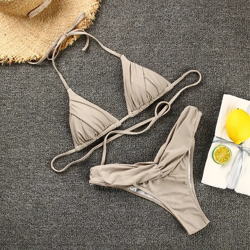 Green Under Wire Push-Up Halter Neck Bikini Set