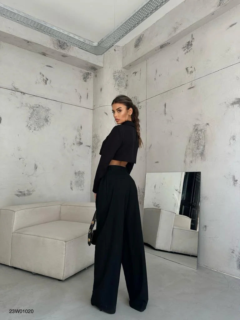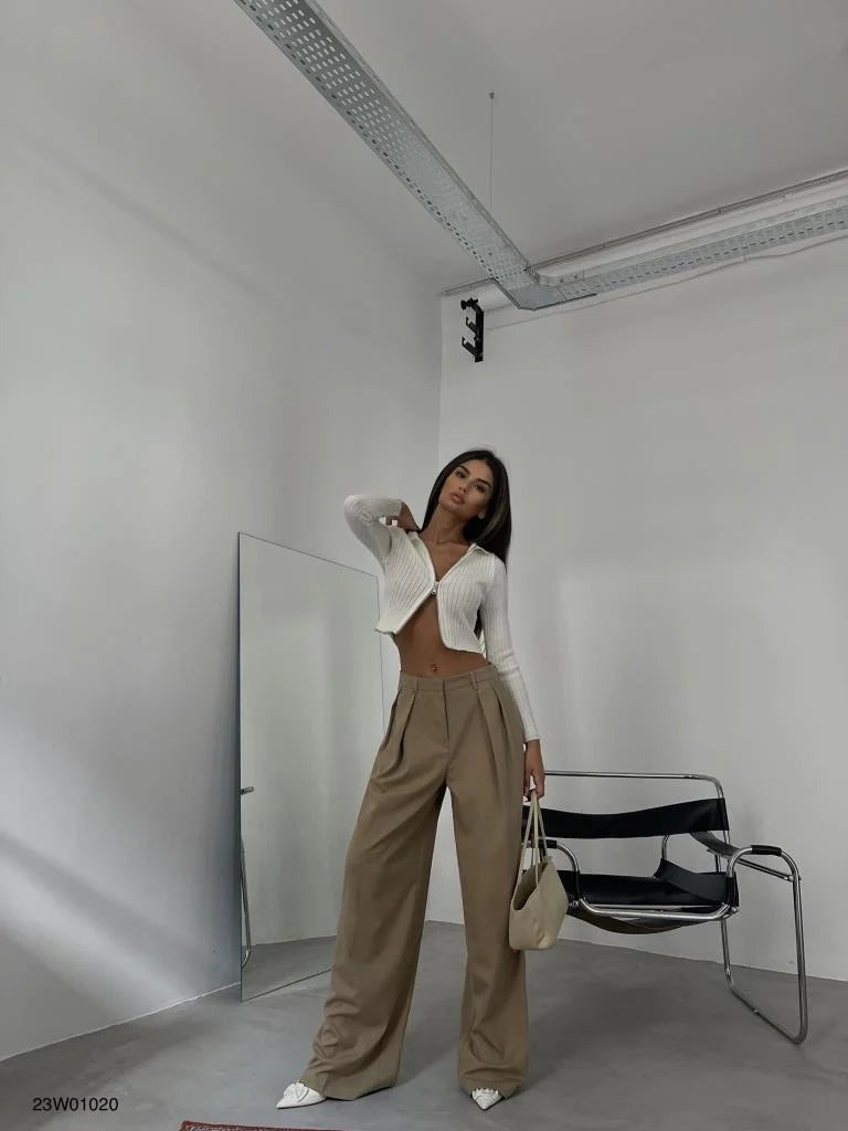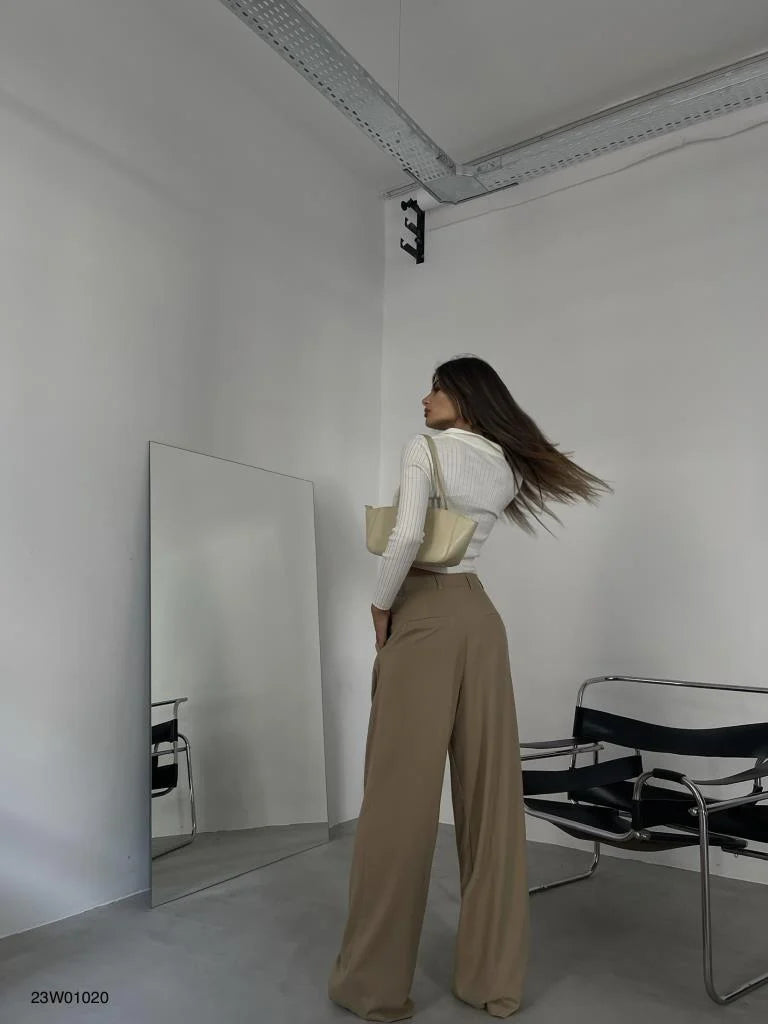 Bring all the chic vibes to your new season wardrobe with these double pleated wide leg trousers, what more could you need? We are loving these wide leg trousers styled with the matching top, your highest heels and some glam accessories for a weekend look that is sure to be remembered doll.