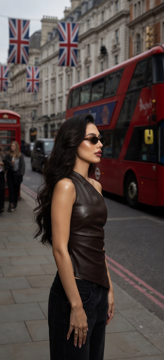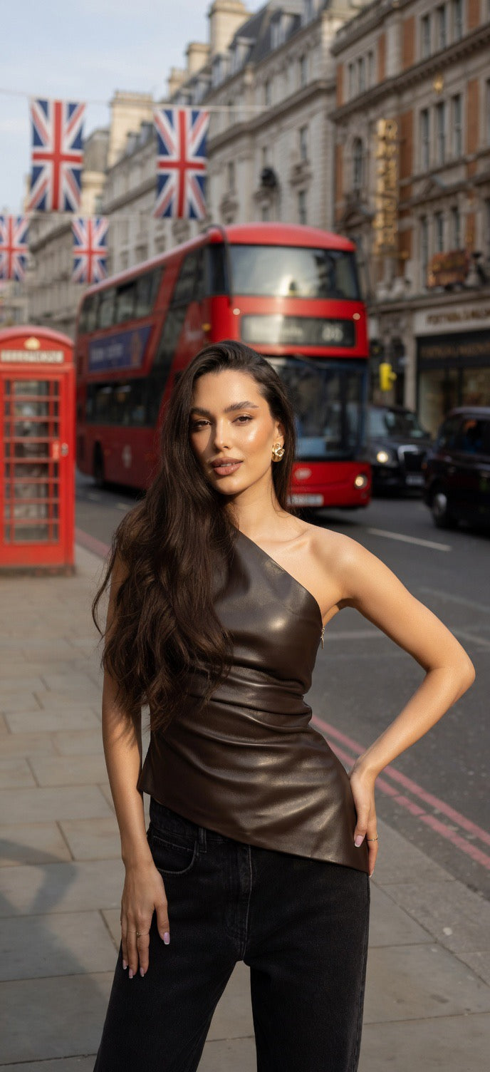 Command attention with this one shoulder top that effortlessly blends sTurkish-chic attitude with night-out glamour. The asymmetric design creates a striking focal point for any ensemble, whilst the sleek faux leather texture adds a touch of rebellious sophistication. Style as seen with high-waisted denim for casual drinks, or pair with a leather mini skirt and strappy heels to dominate the dance floor. For a contemporary club look, layer with oversized blazer and statement earrings. This versatile piece transitions seamlessly from intimate cocktail gatherings to lively nightclub settings, ensuring you stand out whilst maintaining that coveted edge. The unique silhouette flatters your frame whilst the secure shoulder strap keeps everything perfectly in place throughout your night out adventures.