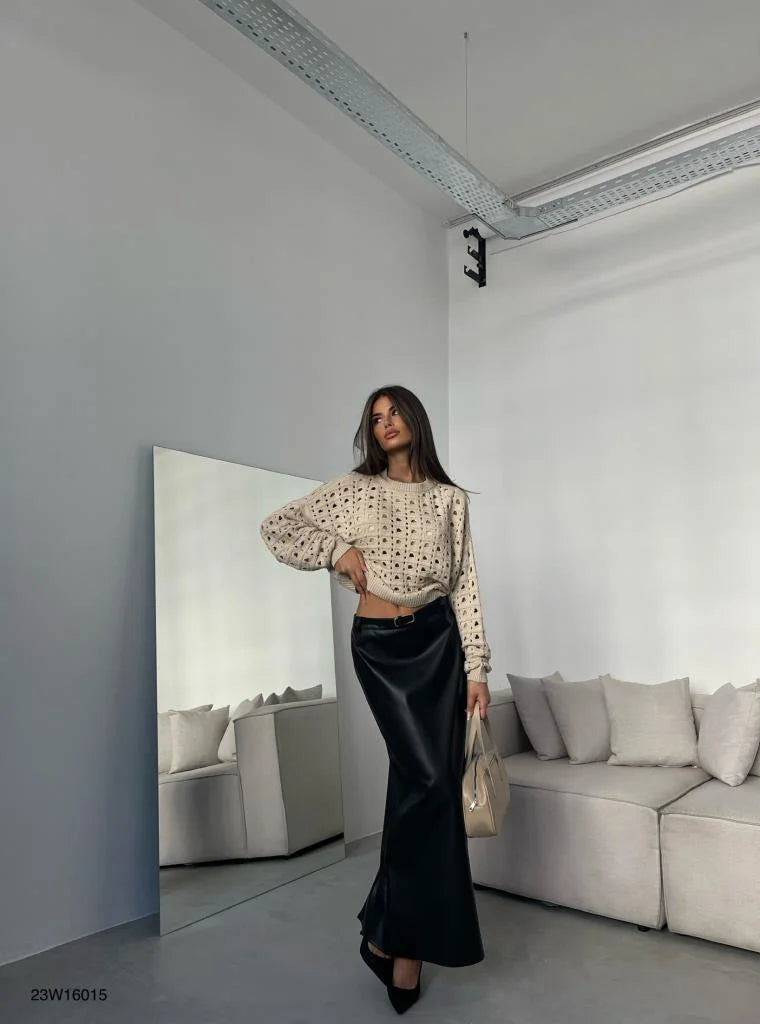 Openwork Crew Neck Sweater
