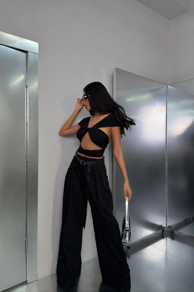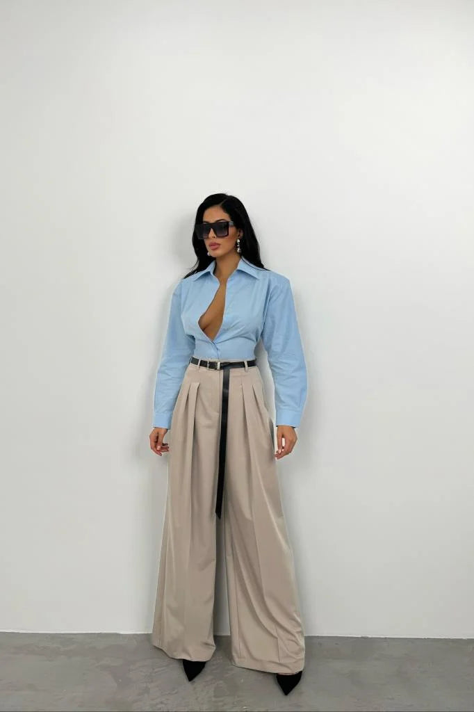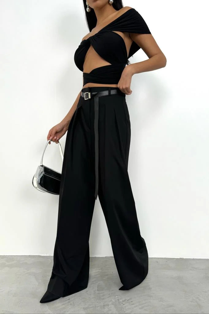 Take your weekend look to new heights with this belted wide leg tailored trousers. Brought to you in a woven material and a belted design and a wide leg fit, we are seriously obsessed. Team this effortlessly with a matching hue bandeau, high heels and accessories for a look all the dolls will love.