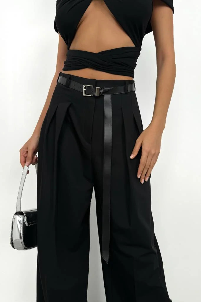 Pleat Detail Belted Trousers