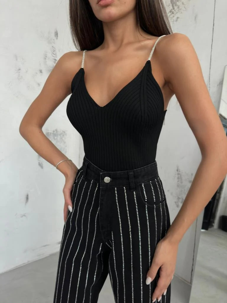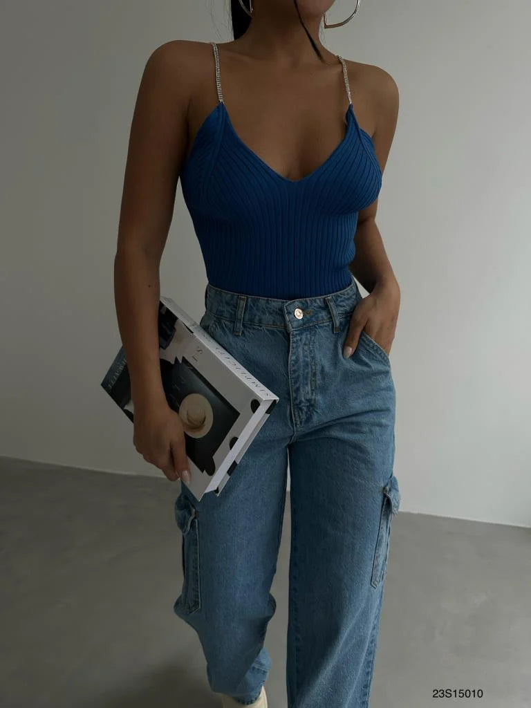 Stone Strap Knitwear Blouse