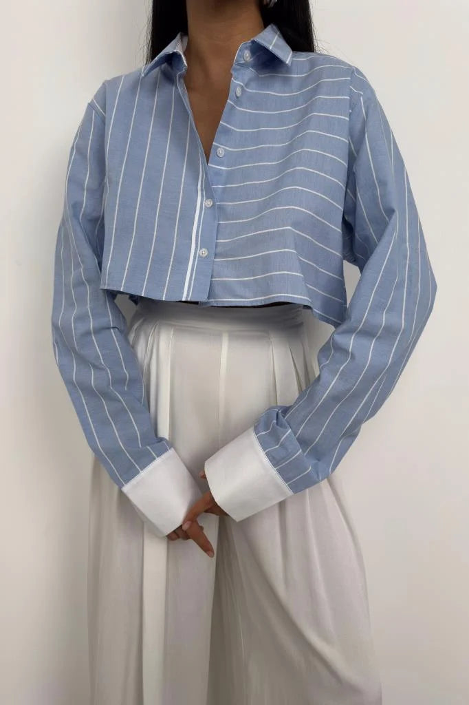 You're sure to be nailing major trends this season with this blue stripe long sleeve shirt, it is the perfect versatile piece to take your look effortlessly from day to night. With a blue stripe print material, long sleeves and a relaxed fit, you'll be adding this women's shirt straight to your basket. Team this long sleeve shirt with wide leg trousers, sandals and simple accessories for a chic, blogger-worthy vibe.
