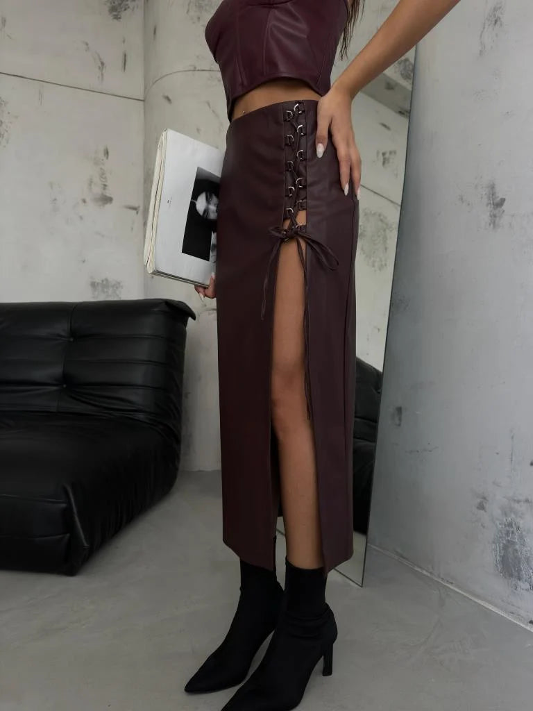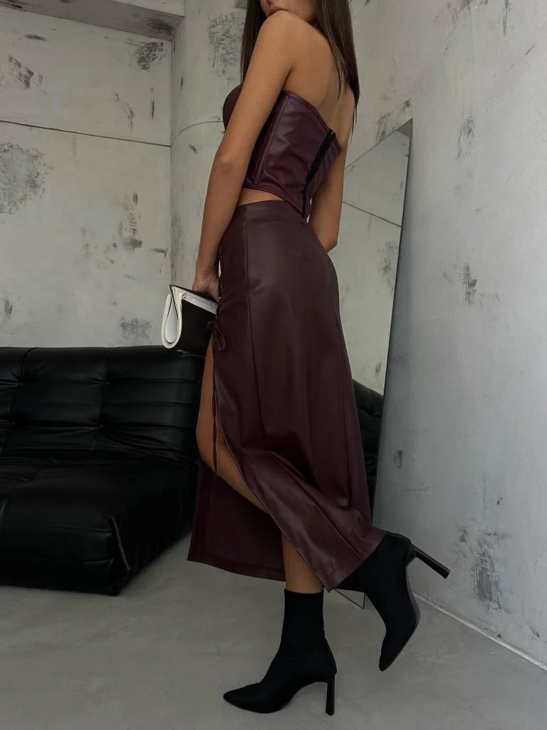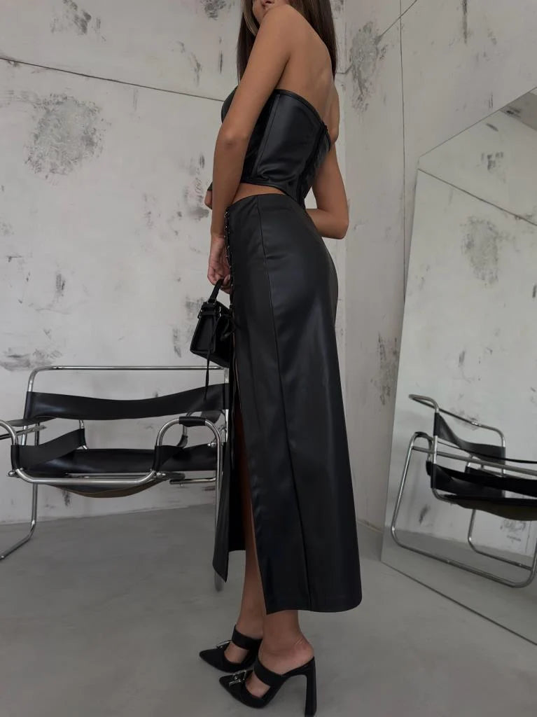 Babe nail all the major trends this season with this faux leather skirt doll, how could you say no? Whether you're heading out with the dolls or have plans with someone special, this maxi skirt is always the answer. Team with a black longline top, clear heels, and silver accessories for a flawless finish.