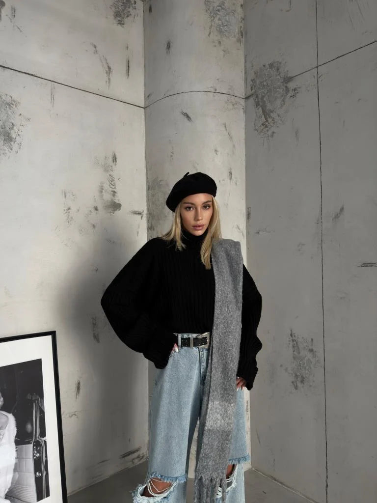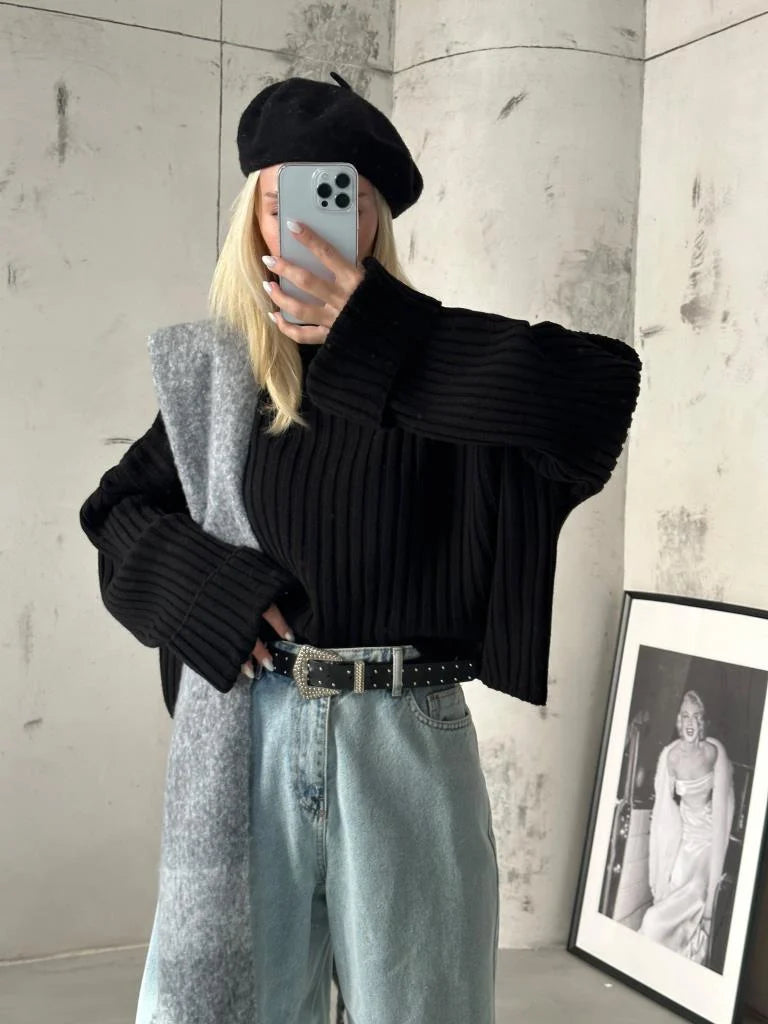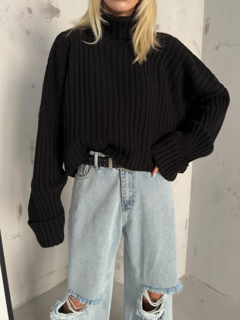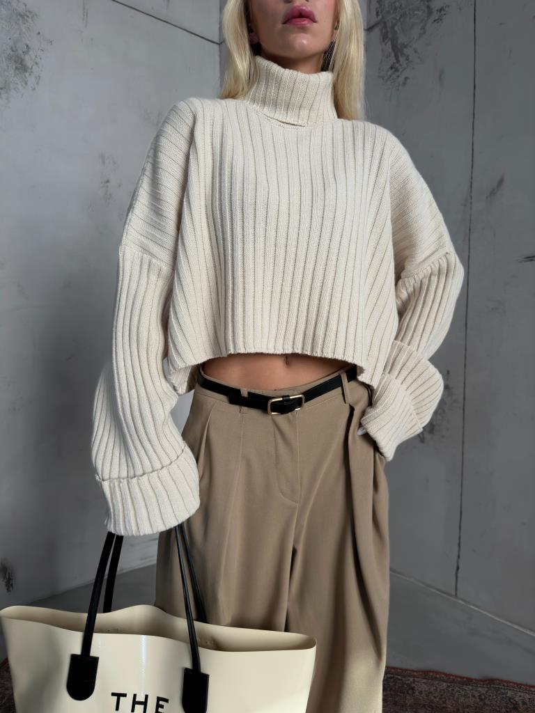 Turtleneck Ribbed Crop Sweater