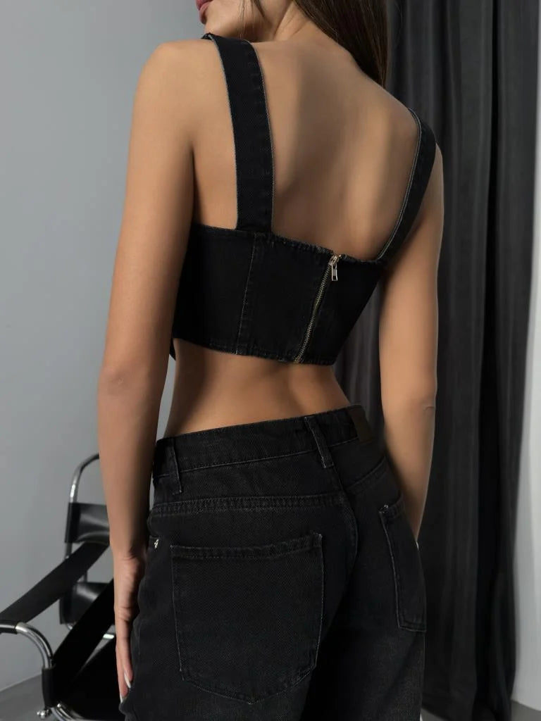 Get ready to have all eyes on you with this underwire denim top. This top is brought to you in a denim wash material with a corset style and a dipped hem, what’s not to love? With it’s corset style you’ll sure to earn all the likes with this dreamy piece. Finish off the look by pairing this with a mini skirt, high heels and gold accessories. It’s a yes from us.
