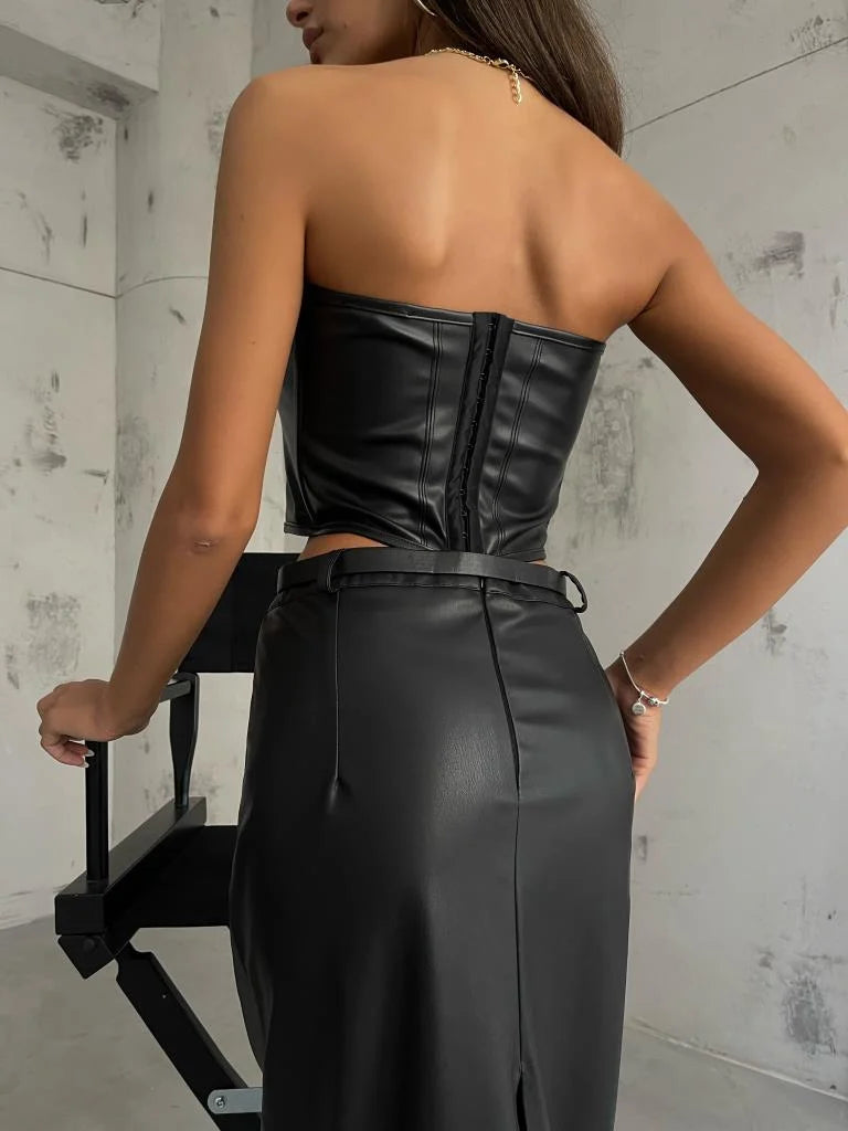 Underwire Leather Crop Top