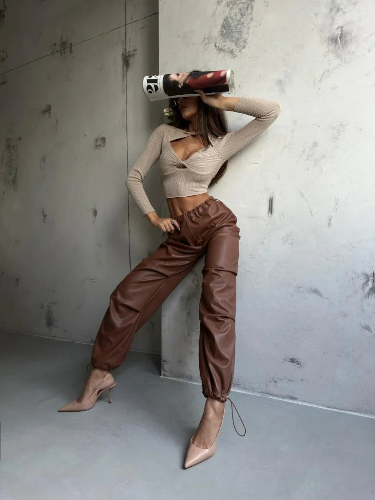 Add a little attitude to your new season wardrobe with this faux leather elasticated waist trousers, they're the perfect piece to take your look from AM to PM. With a faux leather material, an elasticated waist, you'll be adding these trousers straight to your basket. Pair these faux leather trousers, a crop top, slip-on heels and statement accessories for a chic, weekend-ready fit.