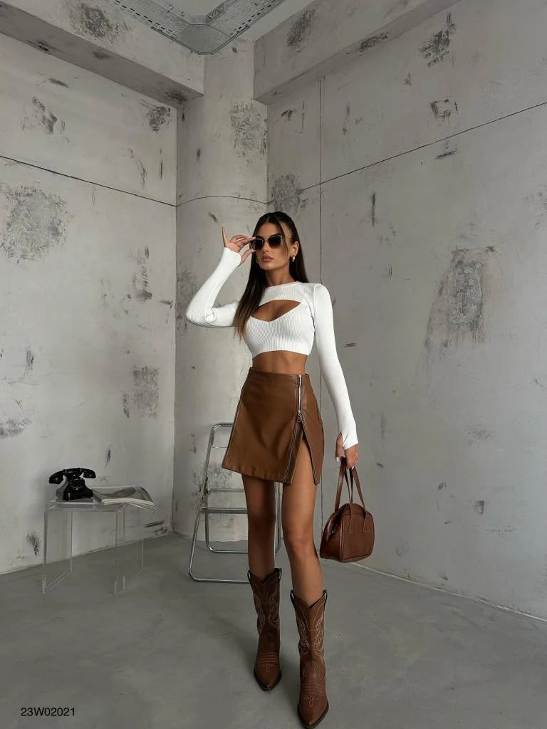 Give your new season wardrobe the chic upgrade it deserves with this faux leather mini skirt, it is a must-have for your next night with the dolls. This skirt features faux leather material with a belt detail and a figure-flattering fit, what more could you want? Team this faux leather mini skirt with a basic top, clear slip-on heels and minimal accessories for a fool proof finish.