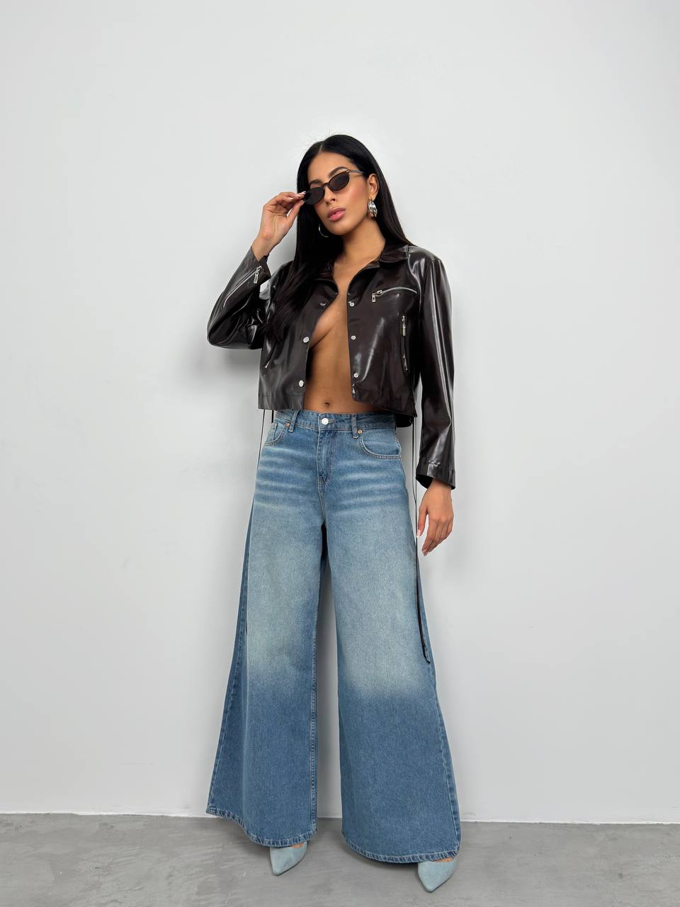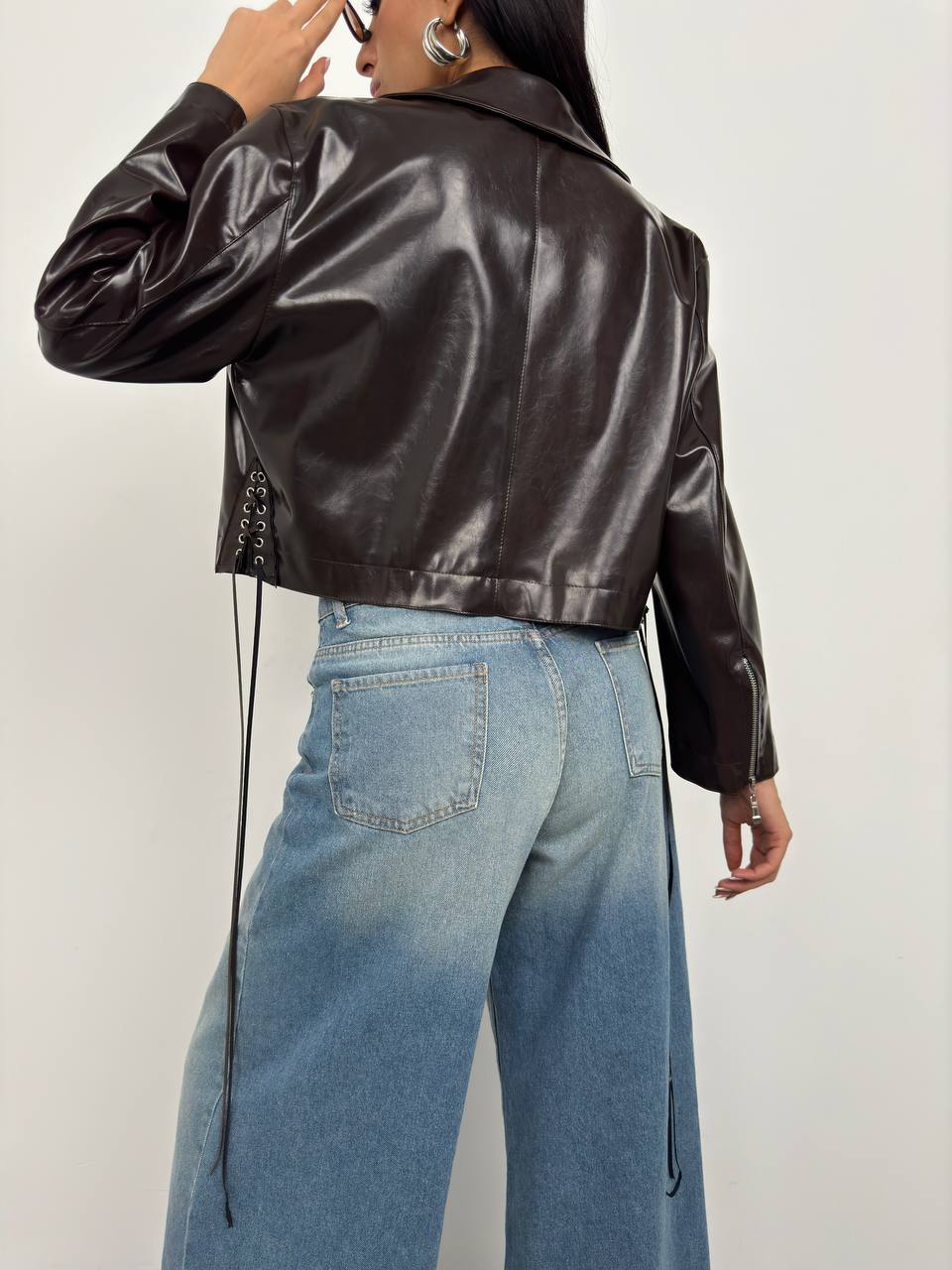 Add some edge to your look with this cropped jacket doll. Featuring a shiny leather material with pocket detailing and an oversized fit, what's not to love? Wear with a white tee and your fave jeans for a cool off-duty vibe.