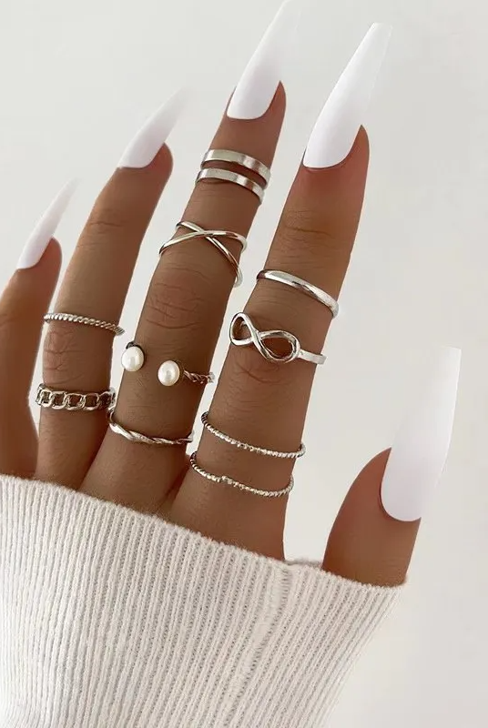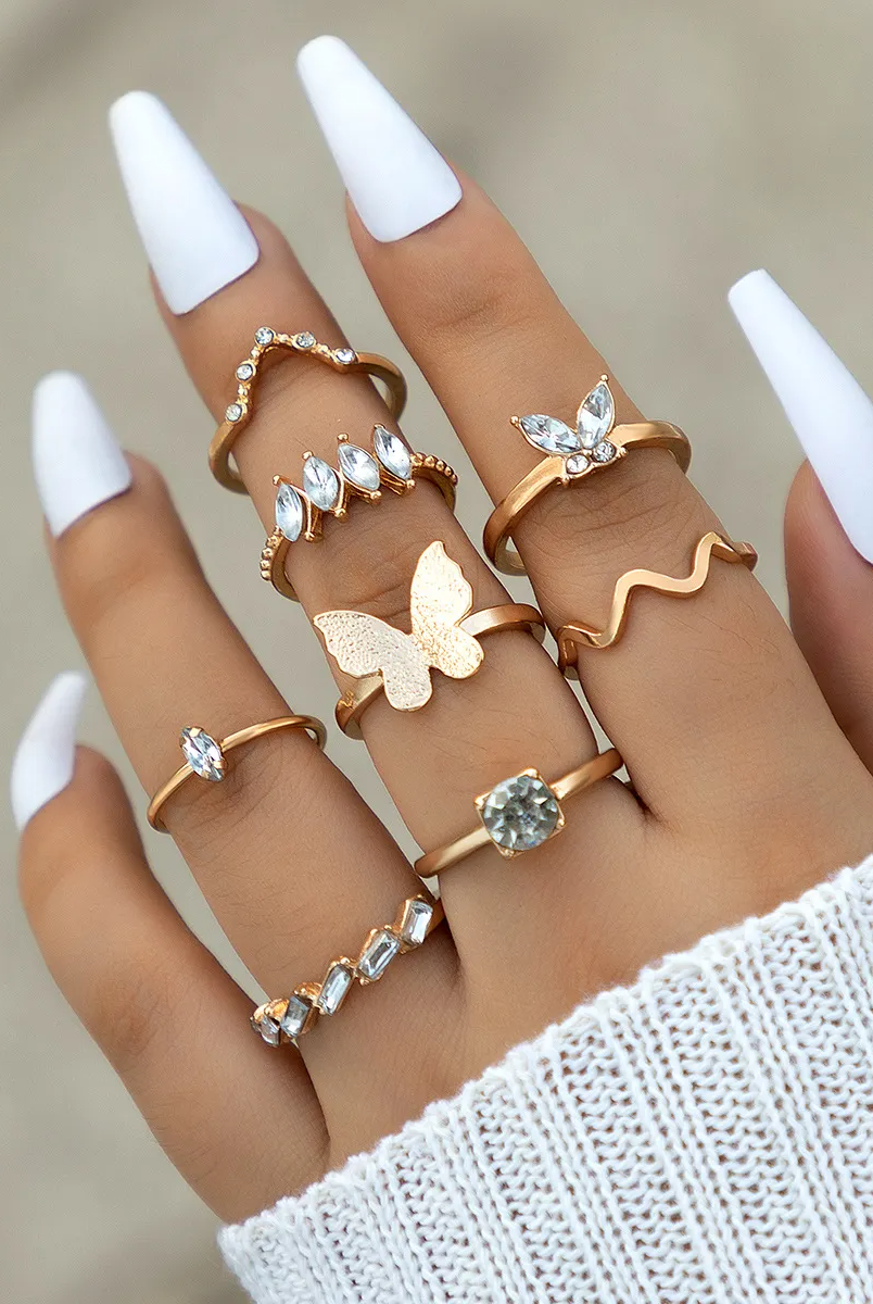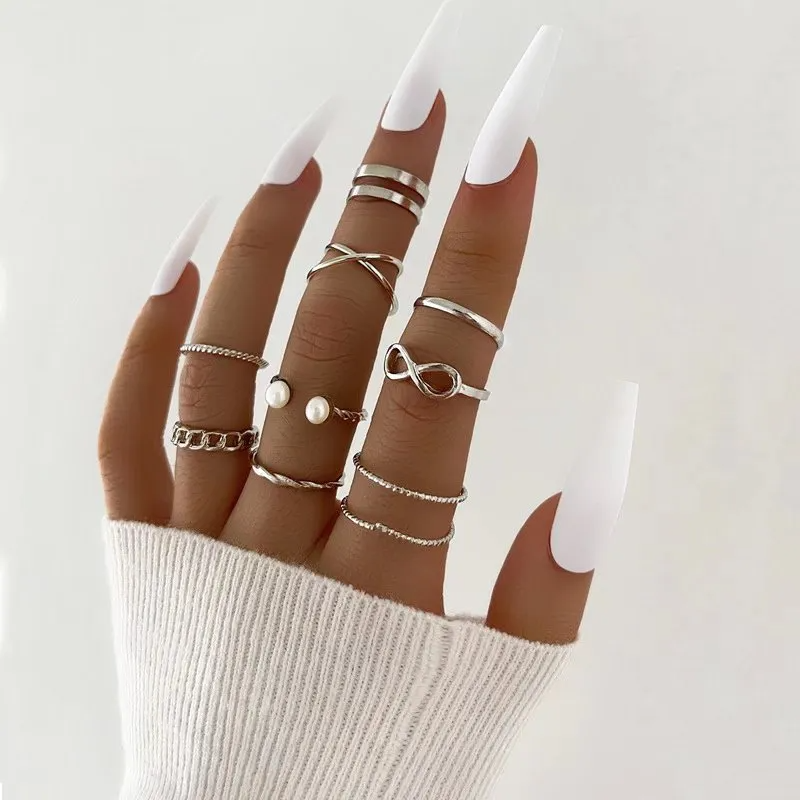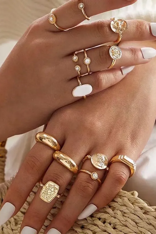 Add the perfect finishing touch to any outfit with this LOVE XO edit of must-have rings for women. From barely-there delicate rings to those all affordable and cheap rings that won't break the bank when you're shopping on a budget and everything in-between. Whether you choose stacking rings or prefer just one statement silver ring, we've got you covered. Go all out with a ring for every finger with our favourite gold and silver tings. Or, if you're loving the antique coin trend, a zodiac signature gold ring is an essential for your jewellery box. Want to add some sparkles to your look? Our sets of gold diamante silver rings are the ones for you. Opt for a chunky silver ring or a set of dainty gold rings to amp up any outfit this season. From statement rings to the more simple silver and gold rings, we've got plenty to choose. Keep your hands looking fresh with our range of rings for women. Whatever look you're styling, we’ve got the ultimate collection of women's rings to finish off any outfit perfectly.