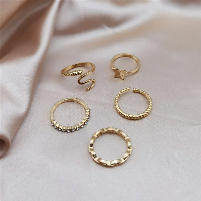When your outfit of the day is in need of a little something extra, look no further that these rings. This set of rings in butterfly, snake and assorted abstract designs, how can you not be obsessed? Simply wear individually or stack these rings for a luxe finishing touch to any look.