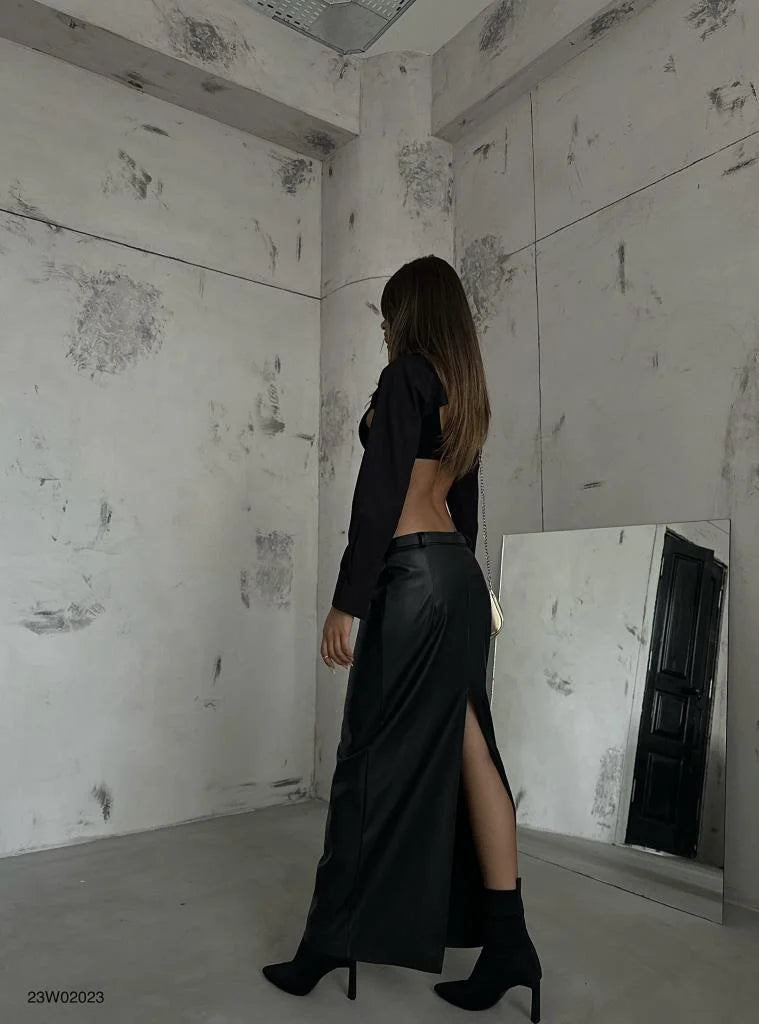 Steal all the stares this weekend with this tall faux leather maxi skirt doll. Whether you have plans with the dolls or a date night you can't miss, this tall maxi skirt ticks all the boxes. With a faux leather material, a low-rise waist and a figure-flattering, you will earn all the compliments. Simply pair with the matching bralette, clear heels and gold accessories for a flawless finish.