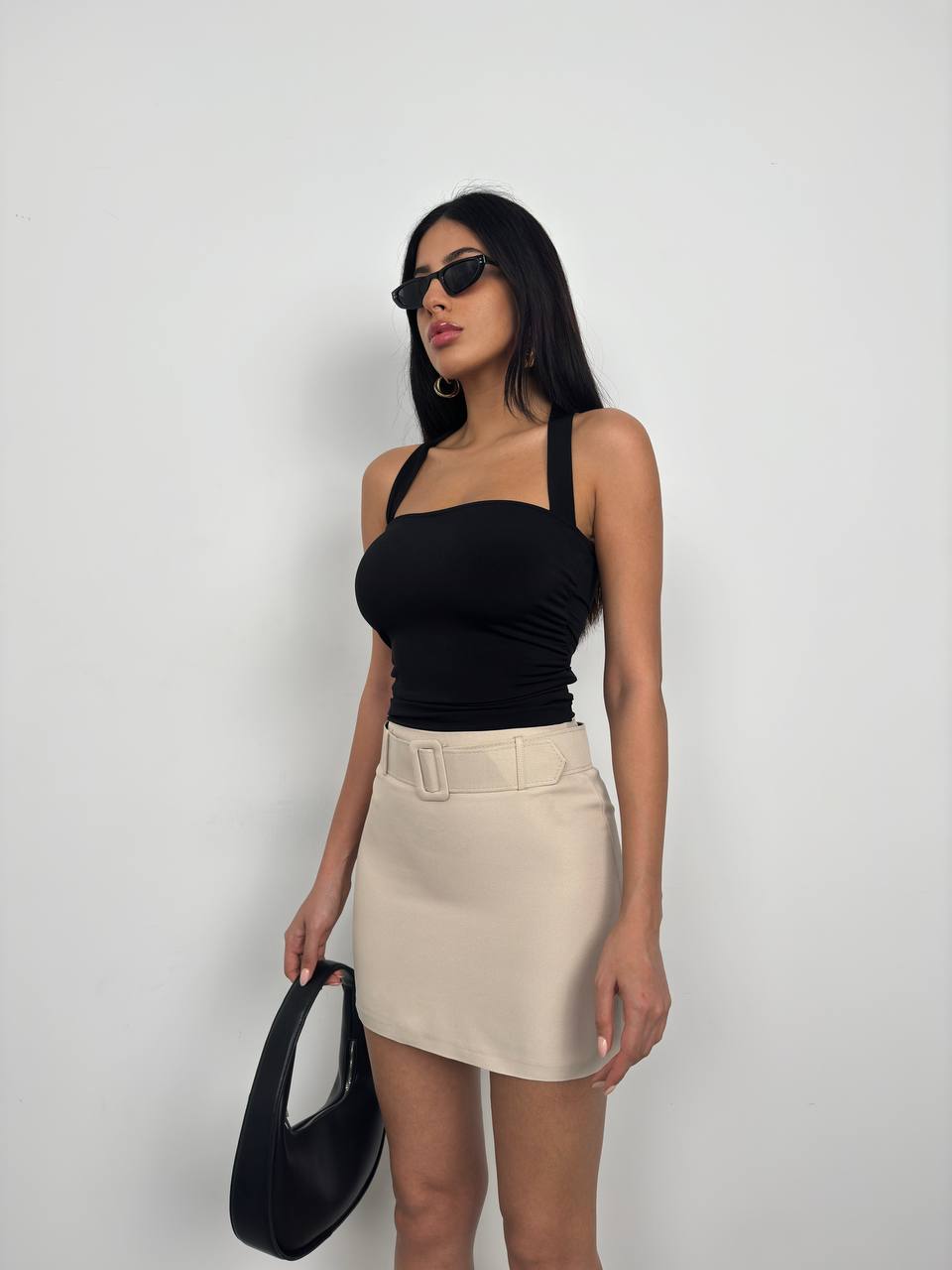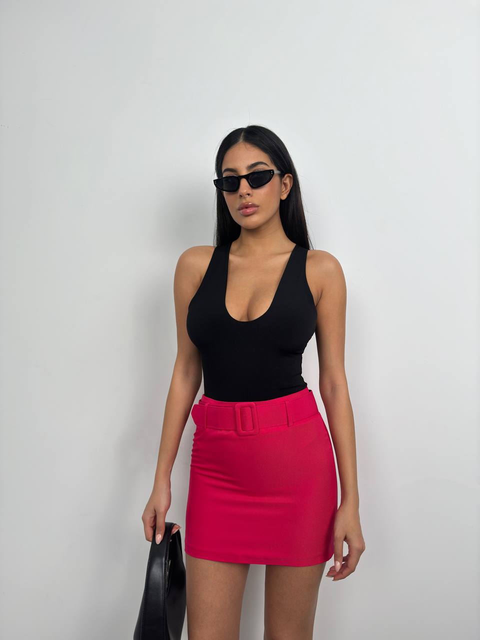 Give your new season wardrobe the chic upgrade it deserves with this belted mini skirt, it is a must-have for your next night with the dolls, what more could you want? Team this mini skirt with a basic top, clear slip-on heels and minimal accessories for a fool proof finish.