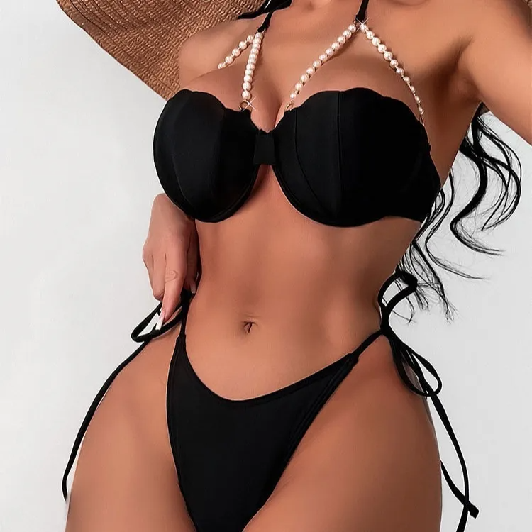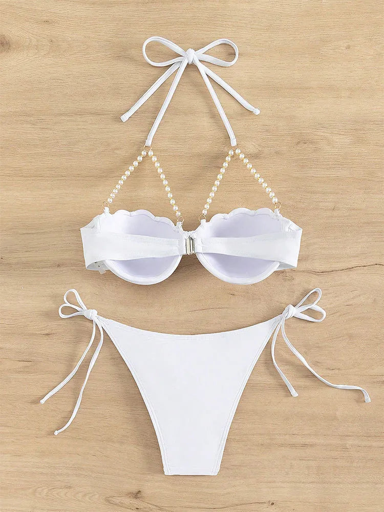 Your vacay wardrobe wouldn't be complete without this pearl detail bikini set, you're sure to be earning all the compliments on your next pool day. This set features a bikini top and bottoms both with pearl detailing, we're seriously obsessed. Pair this set with your fave accessories for a look everyone will want.
