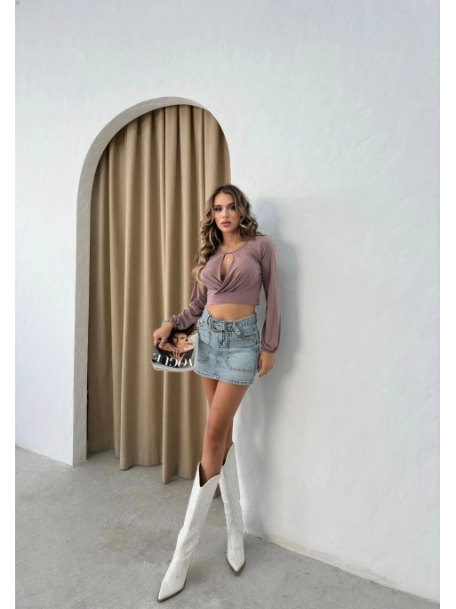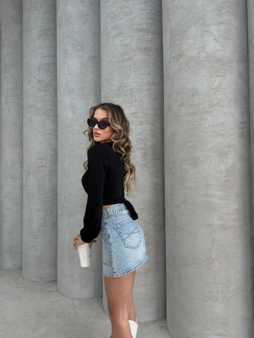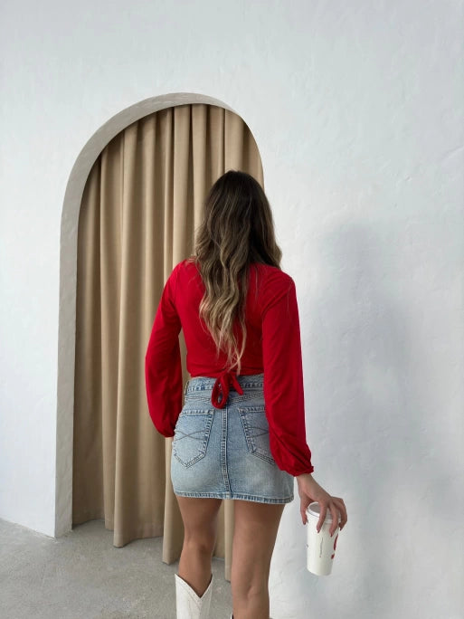 Add this blouse to your new season collection. Featuring a window detail waist tie design, we're obsessed. Team with straight leg jeans and gold accessories for brunch.