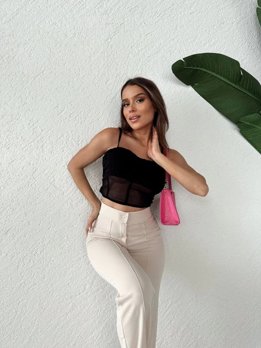 This crop top is the ultimate wardrobe staple because it can be worn with anything, we are loving this styled with trousers and heels for a night out.