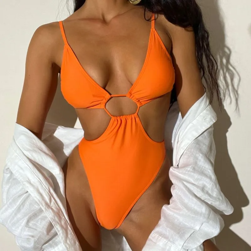 Orange Cut Out Detail Swimsuit