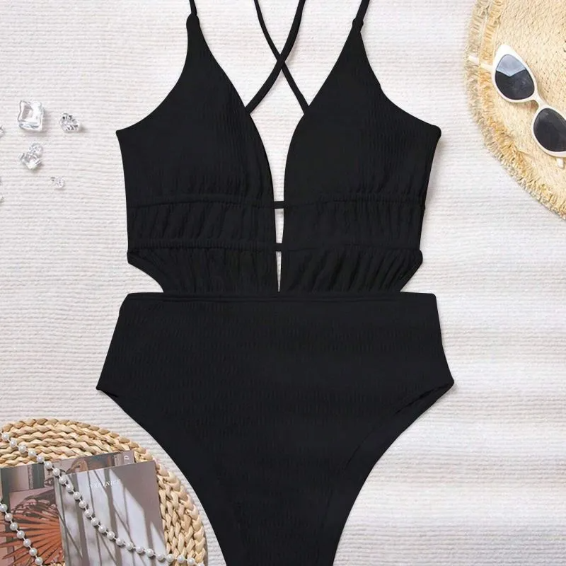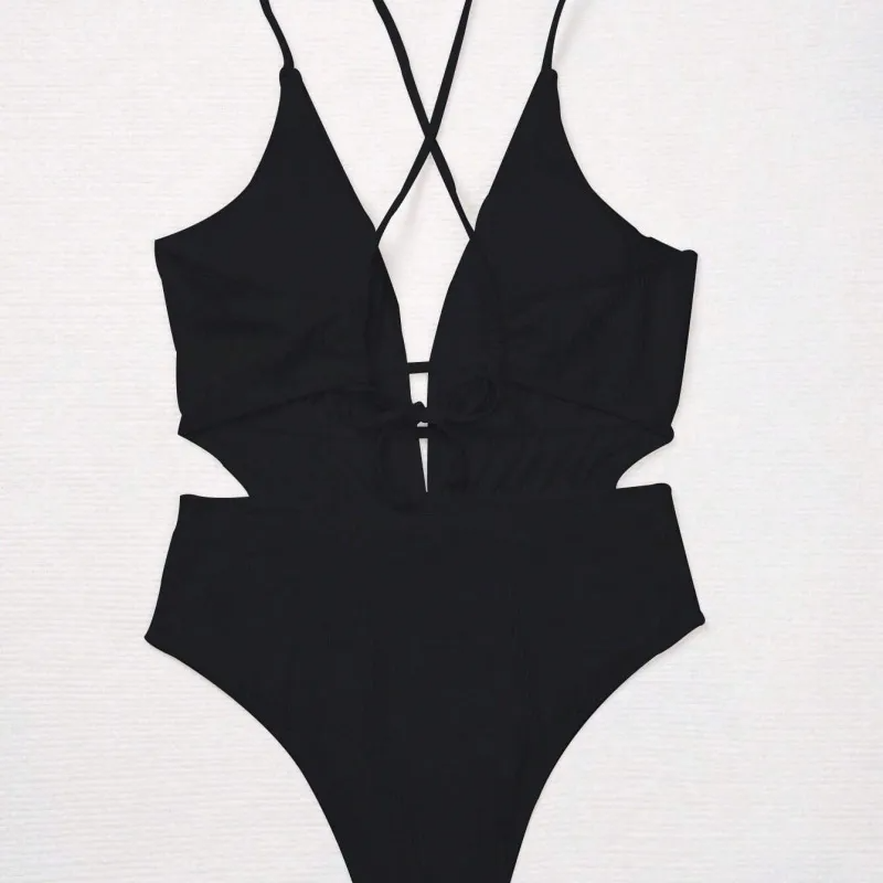 Black Strap Cut Out Detail Swimsuit