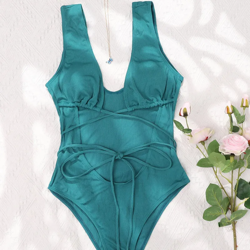 Green Strap Detail Swimsuit