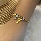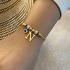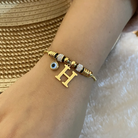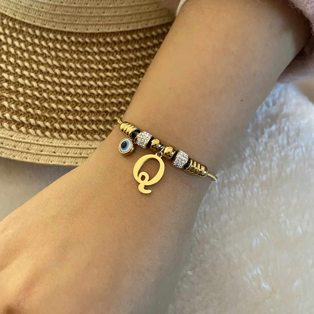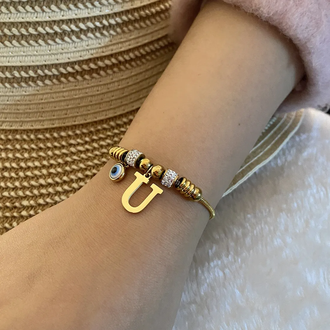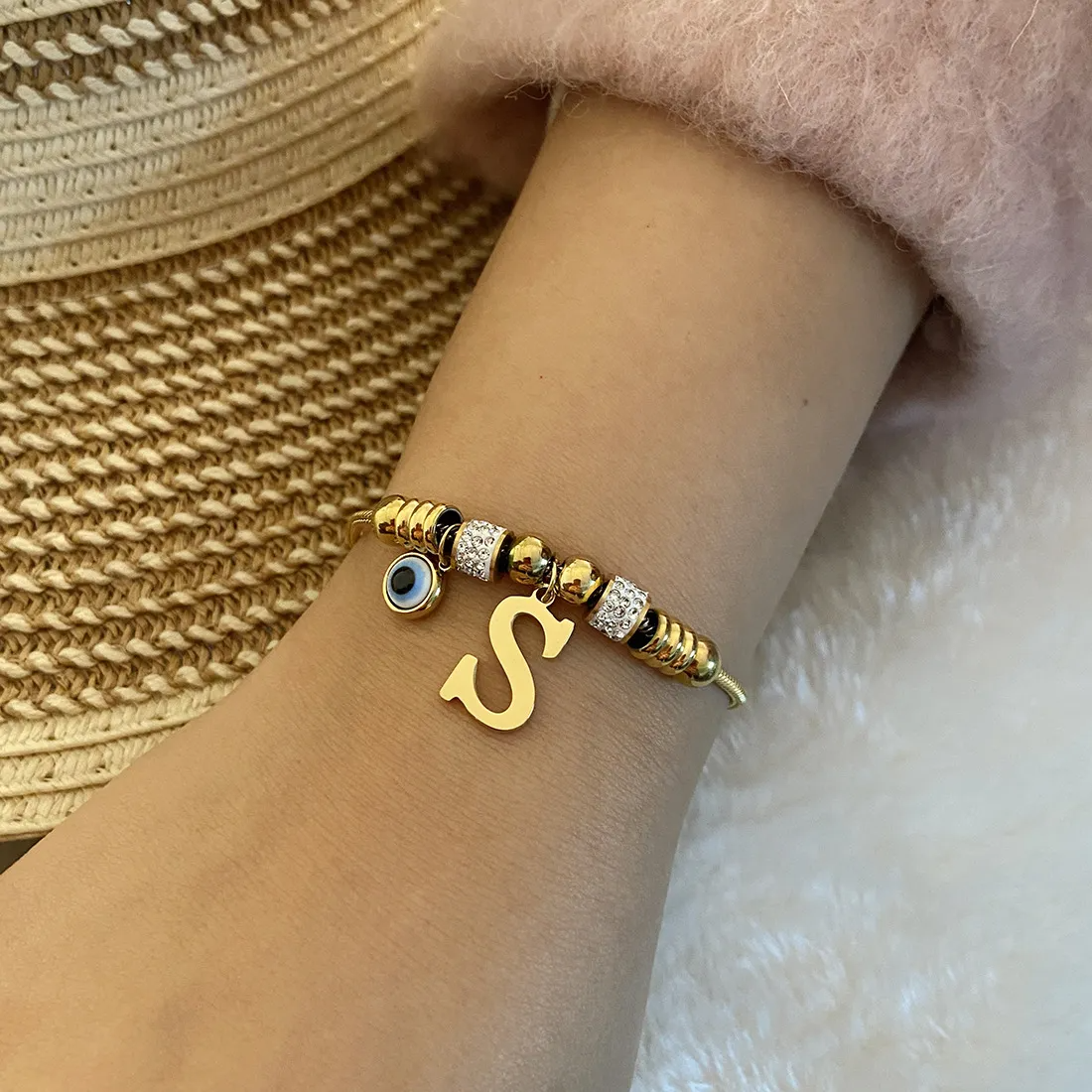 Take your outfit of the day to new heights with this alphabet 26 english letters evil eye bracelet, we're seriously in love. Team this bracelet with your fave new season fit for a flawless finish.