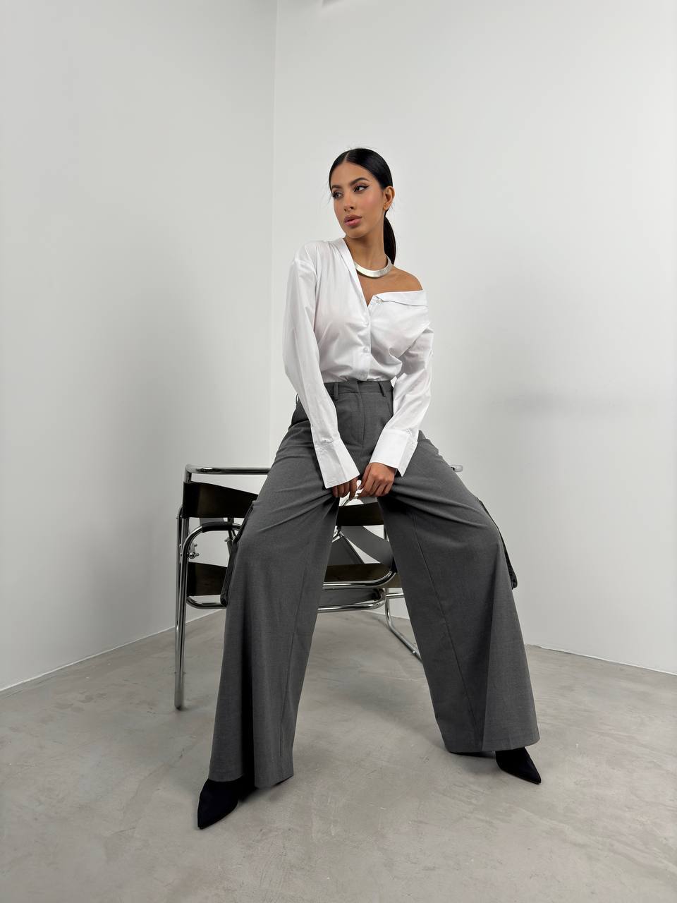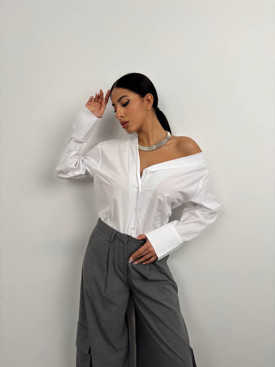 Asymmetric Shawl Collar Shirt