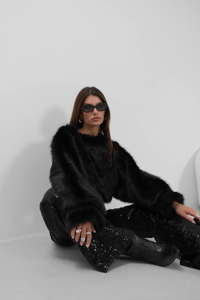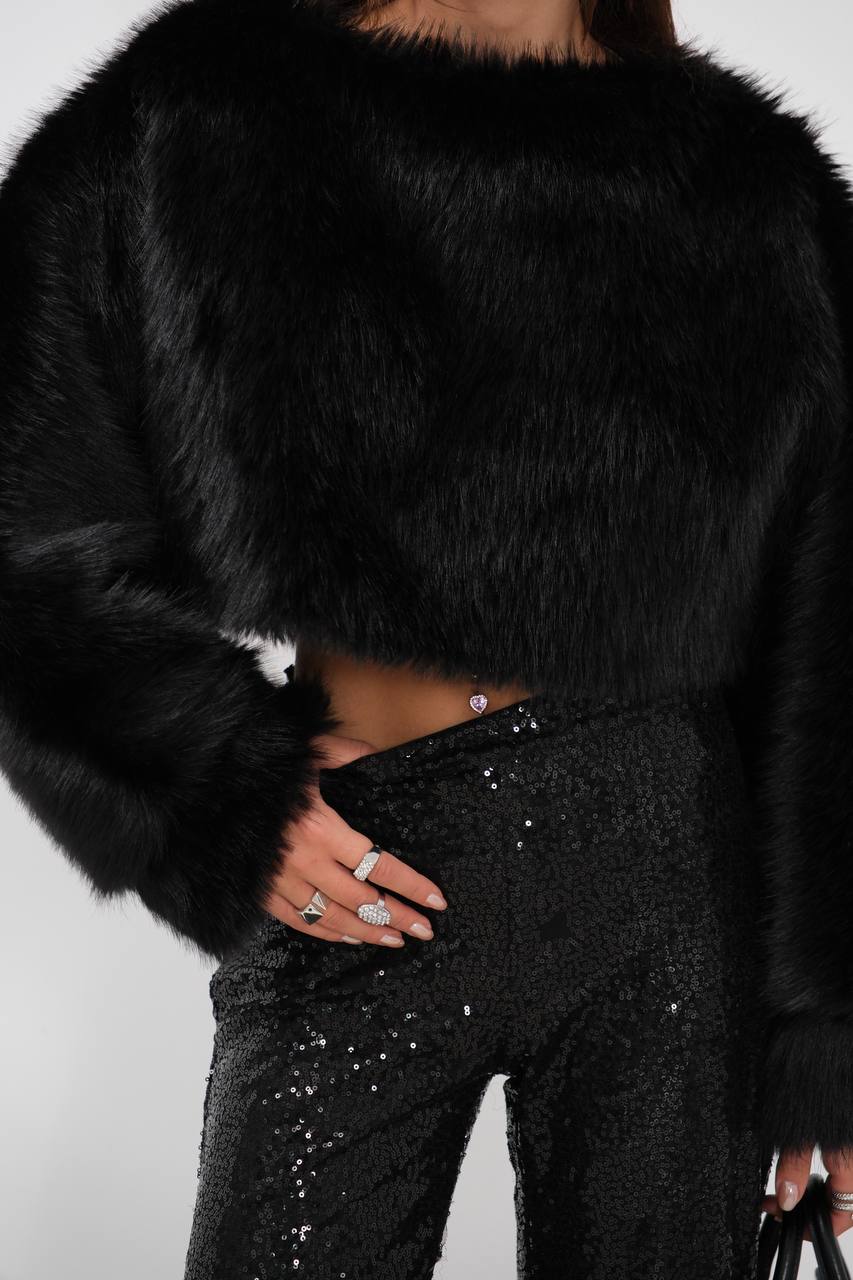 Say hello to this faux fur sweatshirt. Brought to you in a faux fur detail, this top is a must have, we just can't get enough. Style with denim jeans, heels and gold accessories for a look like no other.