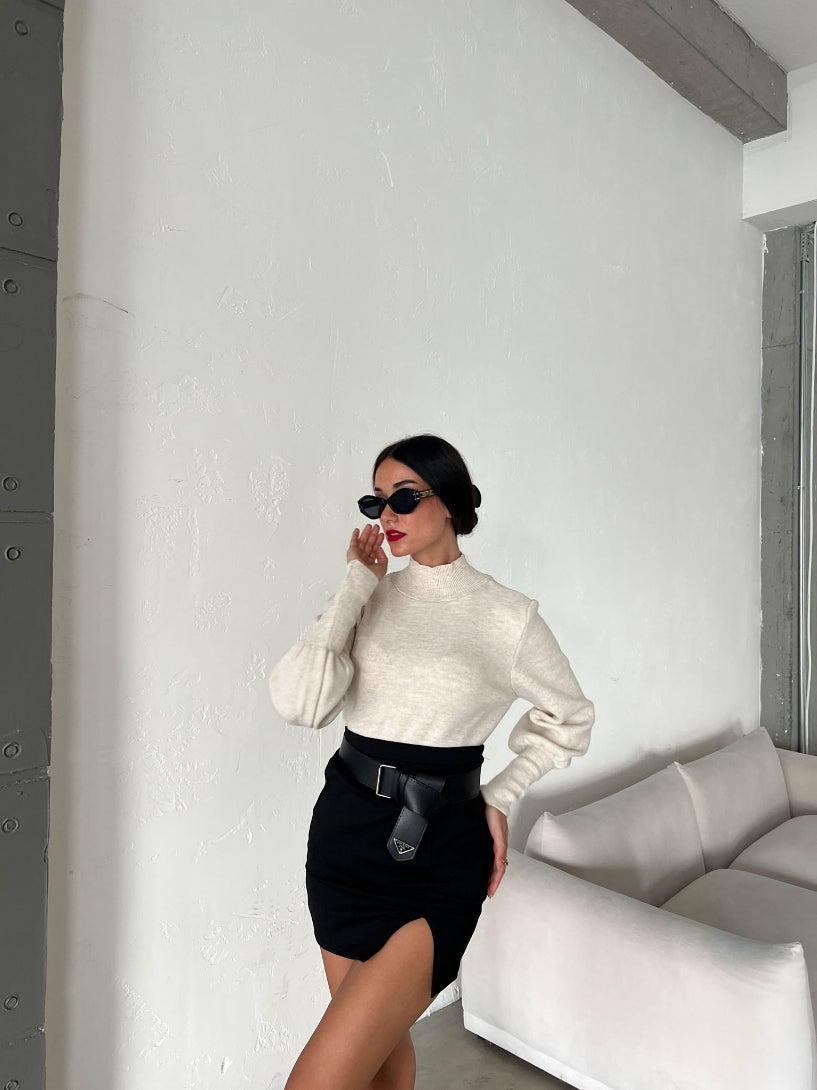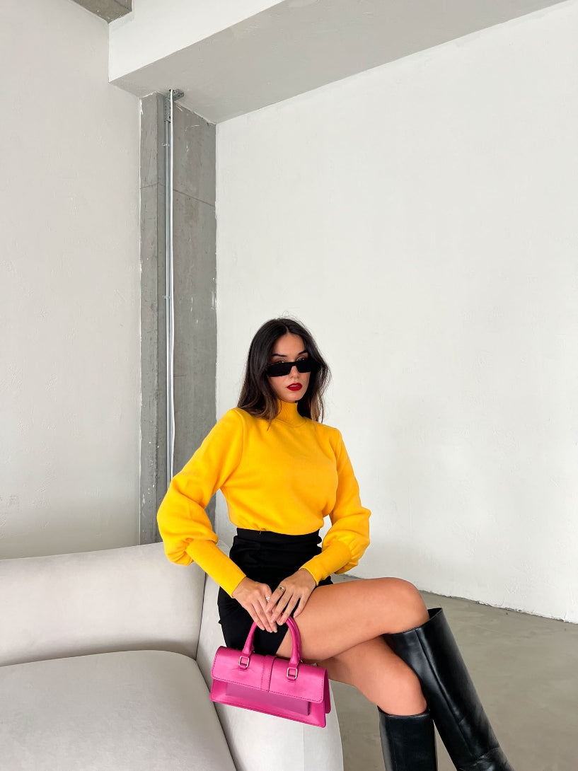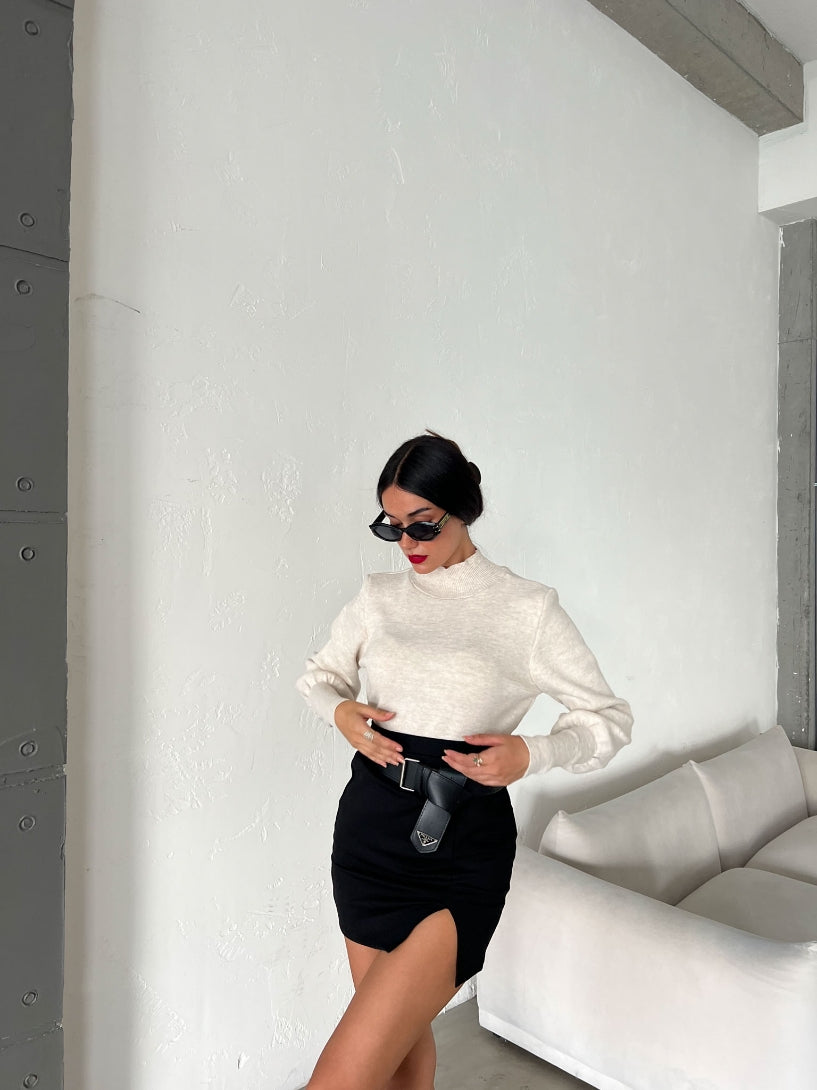 This high neck jumper is sure to be a staple in your off-duty wardrobe, how can you resist? Style this cropped jumper with black jeans, your go-to pair of trainers and gold hoops for an effortless everyday look they will be reaching for again and again.
