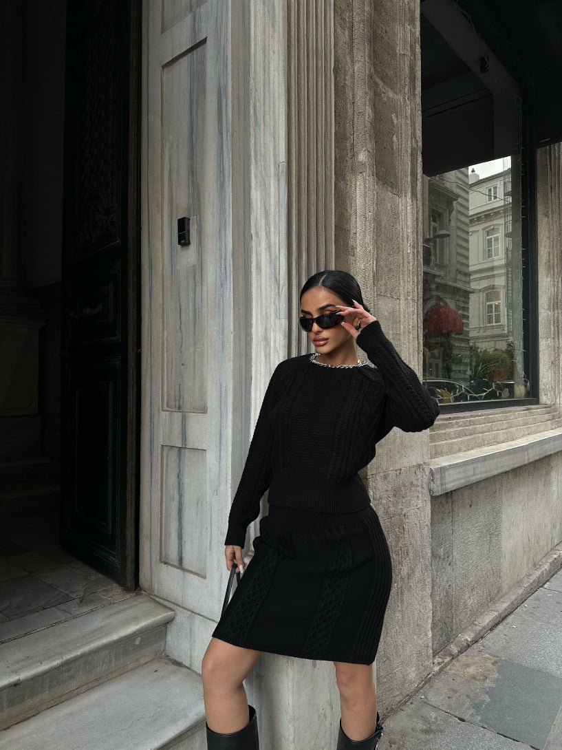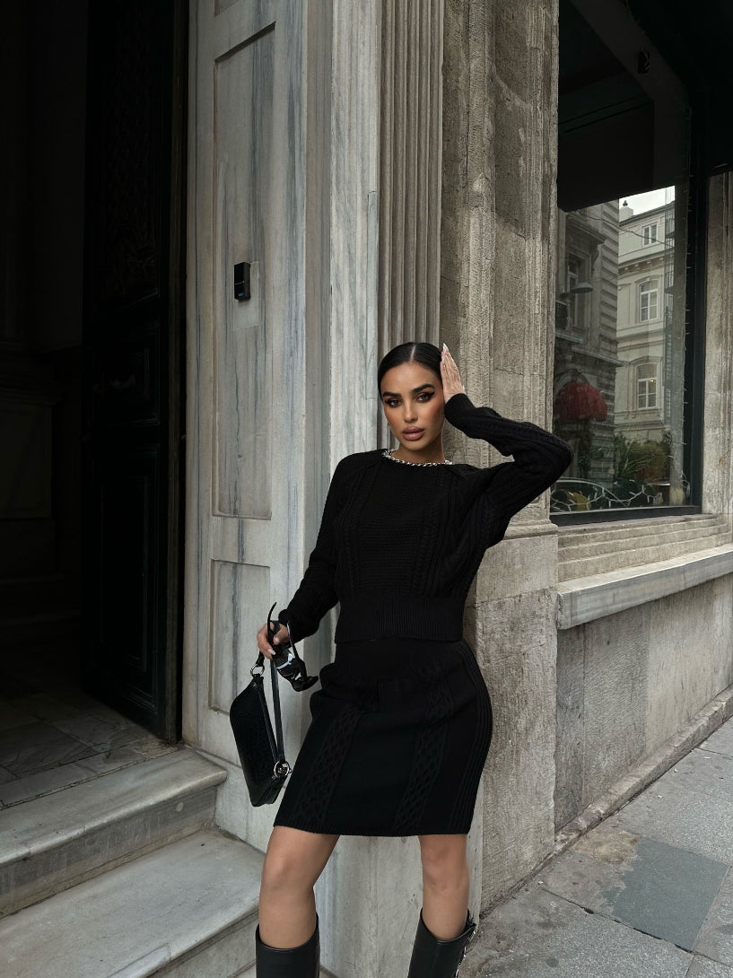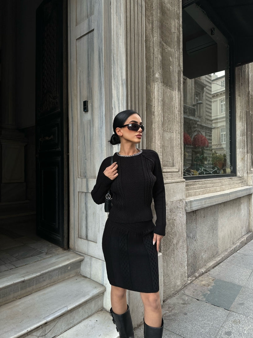 Basic Knitted Top and Mini Skirt Set