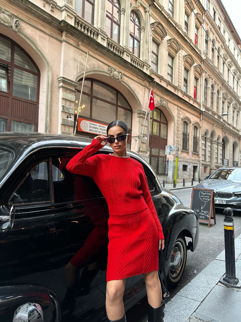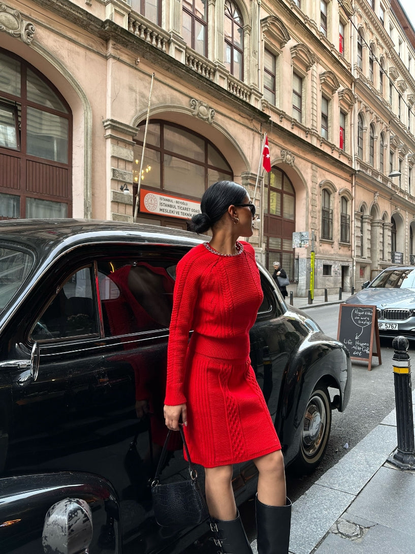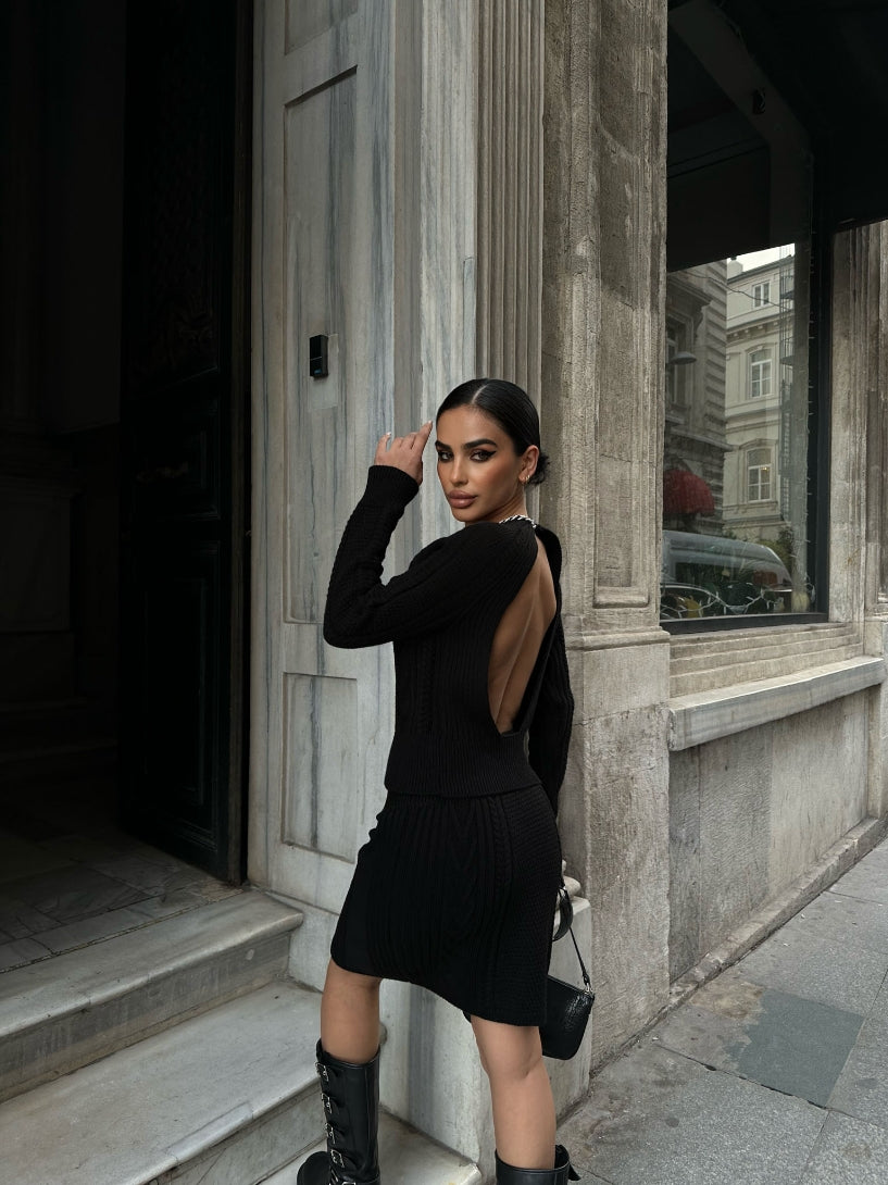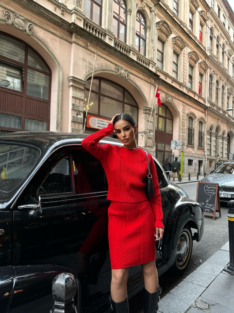 Basic Knitted Top and Mini Skirt Set