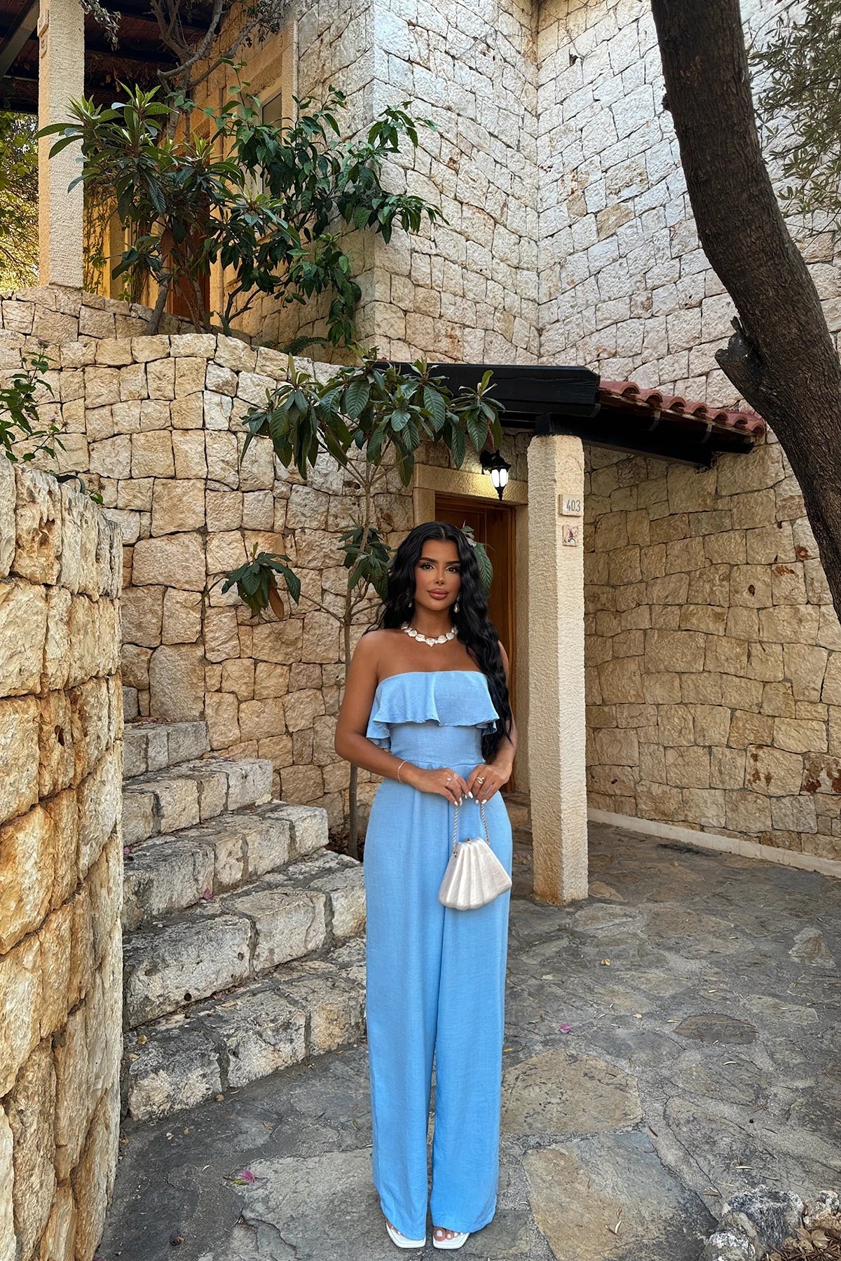 Got plans for the weekend ? Styling has never been more simple with this must-have strapless jumpsuit, we're obsessed, what's not to love? Pair with clear slip-on heels and your fave accessories for a look that will earn you all the likes, it's a definite yes from us.