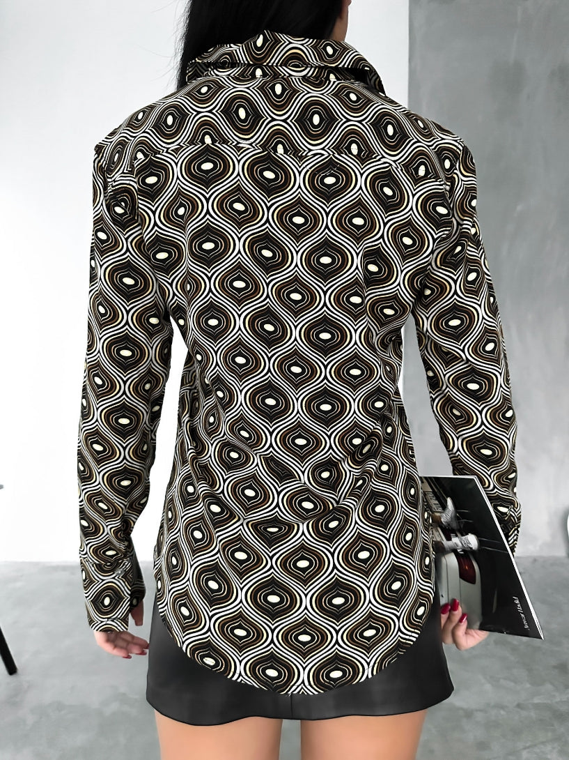 Your weekend fit is finally sorted with this shirt. Featuring a black abstract print material with a button down design. Pair with trousers and your fave heels for a night with the dolls.