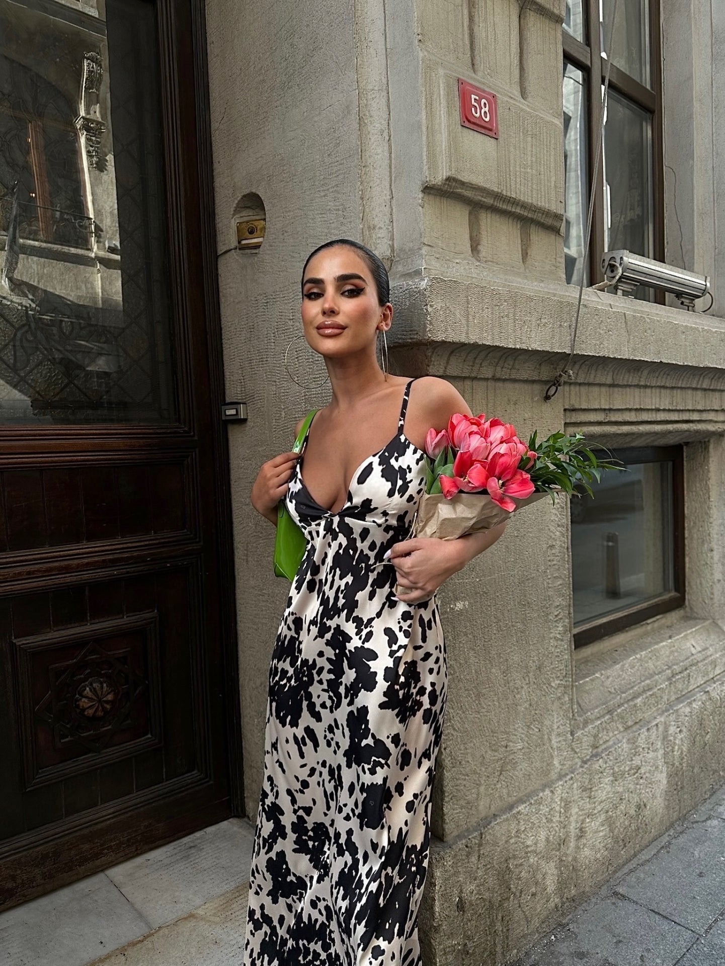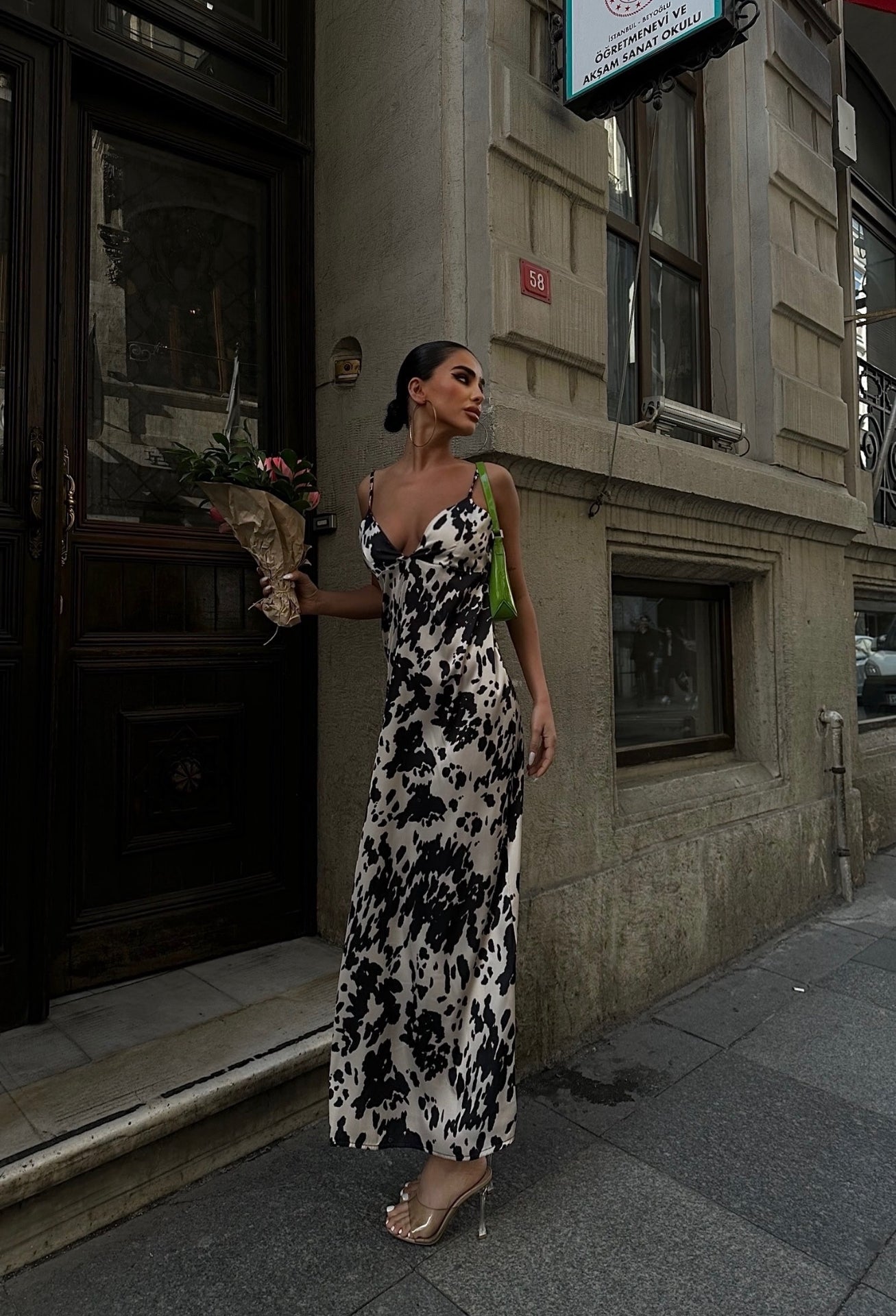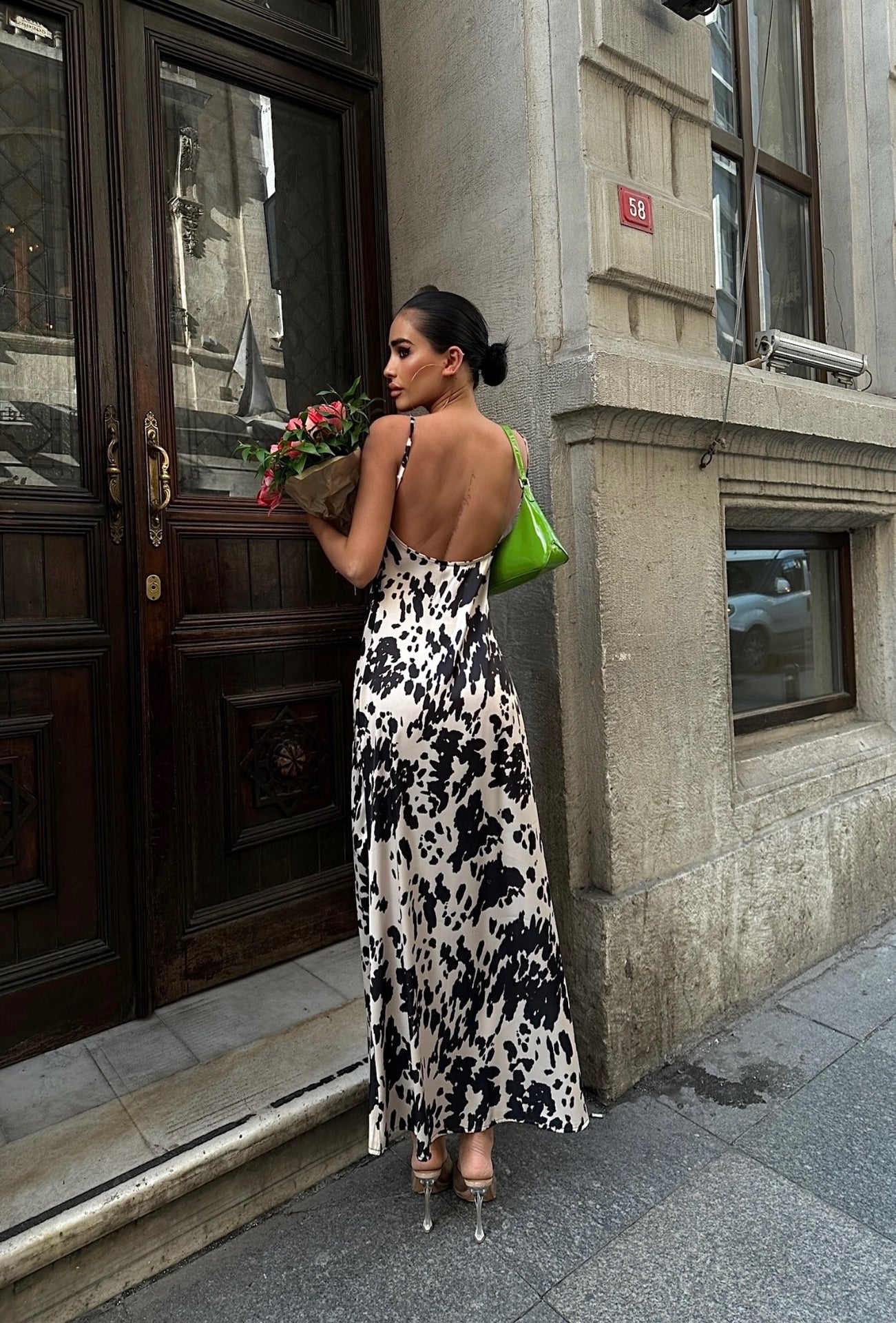 Add some freshness to your weekend look with this dress. Featuring a black and white material with a midaxi length, we are in love. Style with a shoulder bag and heeled mules to keep all eyes on you.