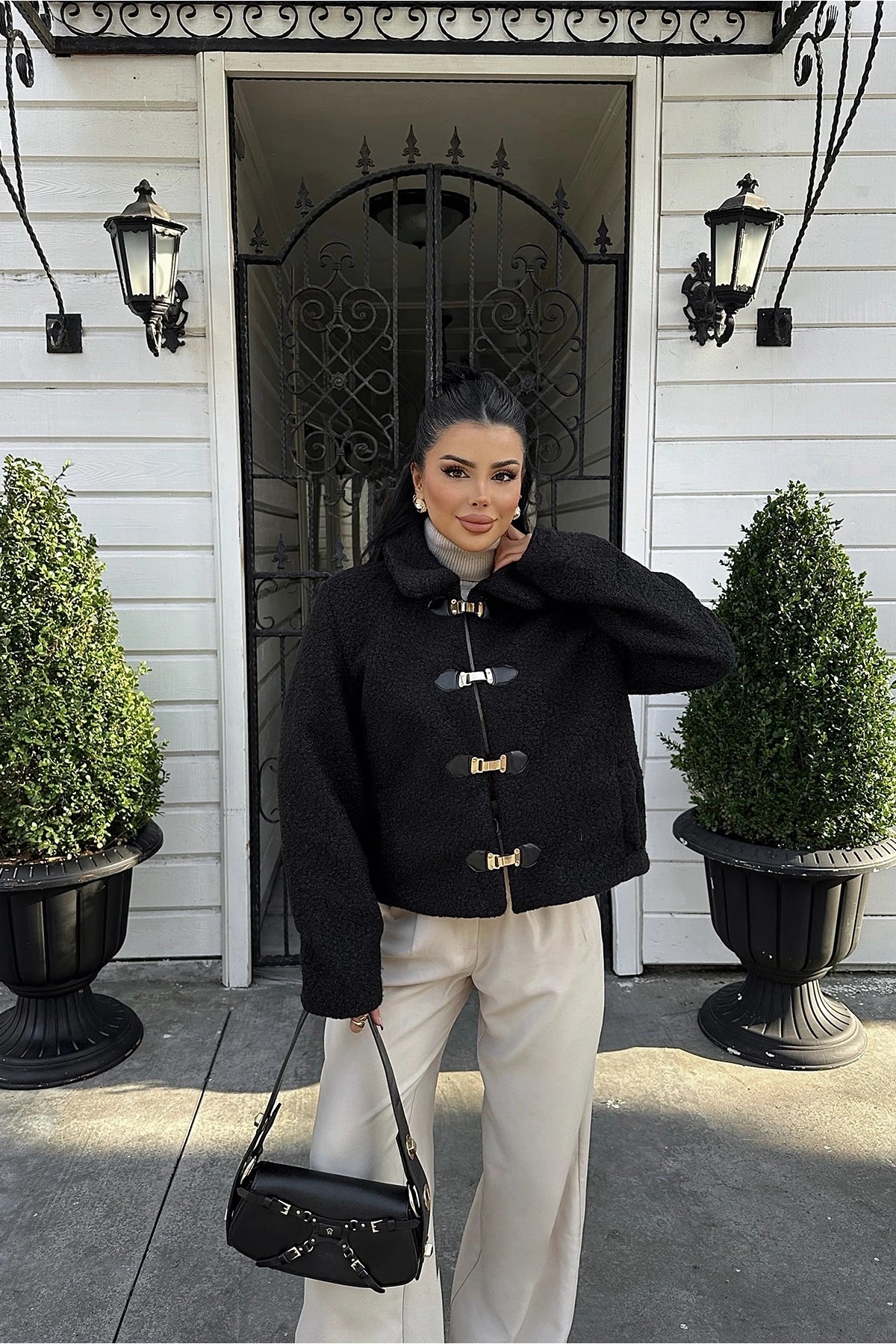 Give your outerwear collection a serious update with this jacket. Perfect for dressing up or down, this jacket is sure to add an edge to your look. Babe wear with a faux leather trousers, and heeled boots for a simple yet chic, weekend-worthy look.