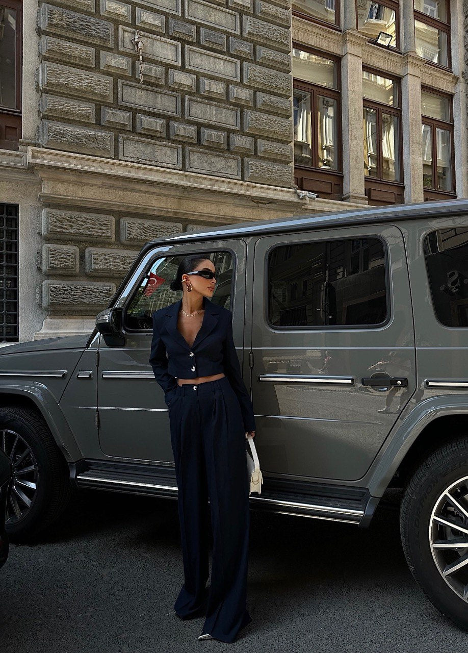 Suit up for the busy week ahead in style with this cropped blazer and trouser set. We are loving this cropped blazer styled with the matching trousers, heels and a mini bag for an effortlessly chic look we just can't get enough of.