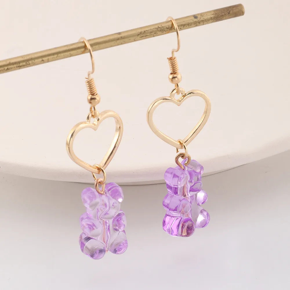 Cute Bear and Love Heart Pendant Necklace + Earrings Set