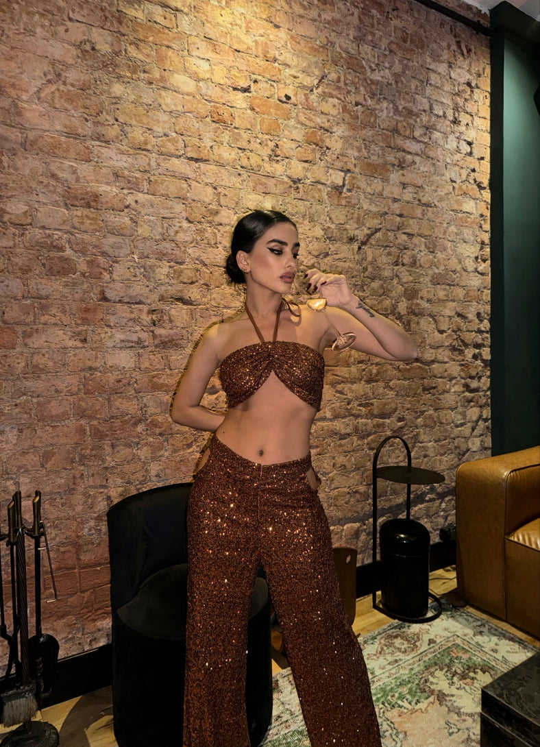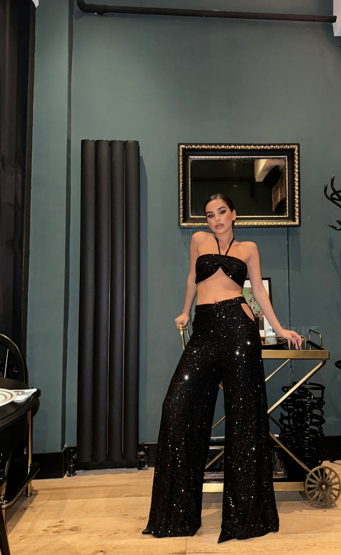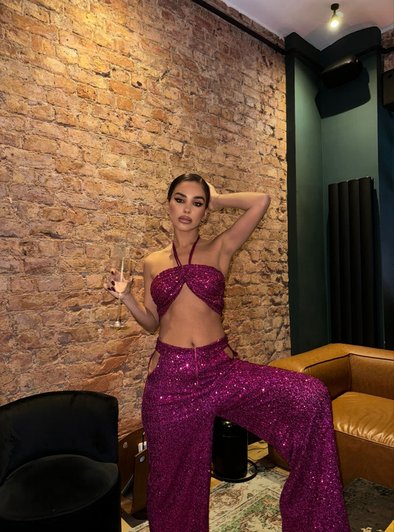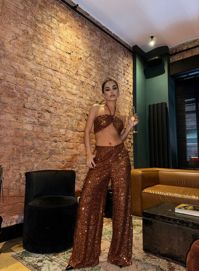 Give your new season wardrobe the chic upgrade it deserves with sequin co-ord set, we're seriously in love doll. This top and trouser set feature a sequin material with a tailored design and a wide leg fit, what are you waiting for? Pair these sequin trousers with a matching top, your highest heels and a mini bag for a look that will have you at the centre of attention.