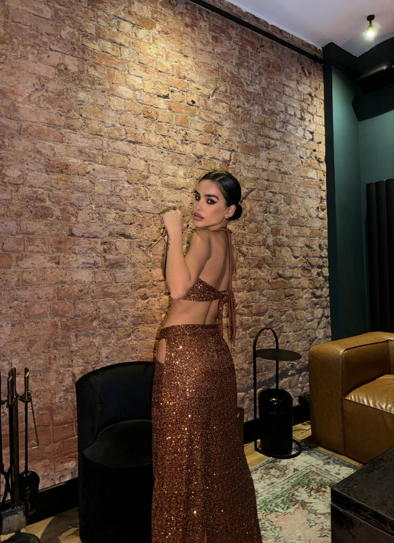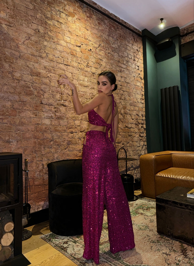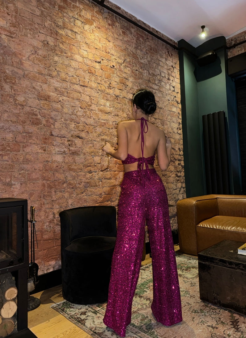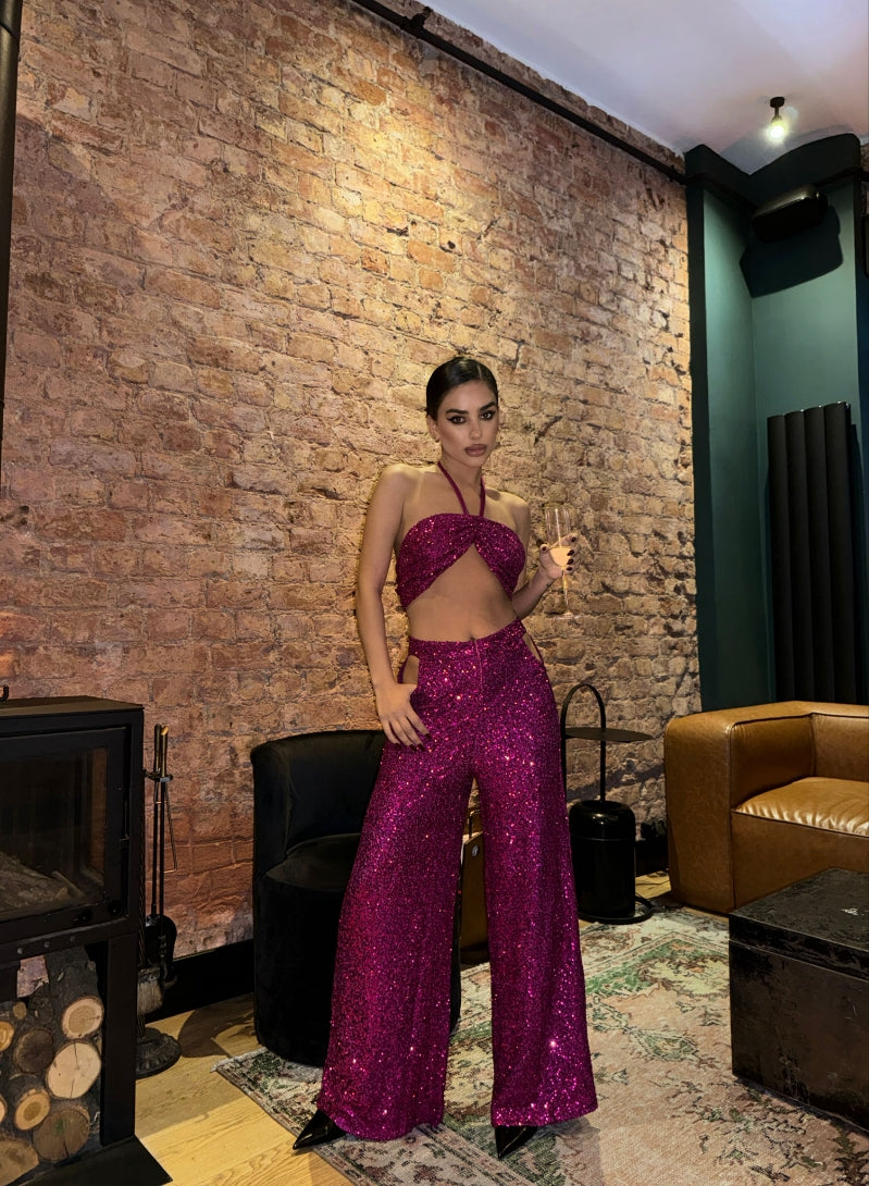 Give your new season wardrobe the chic upgrade it deserves with sequin co-ord set, we're seriously in love doll. This top and trouser set feature a sequin material with a tailored design and a wide leg fit, what are you waiting for? Pair these sequin trousers with a matching top, your highest heels and a mini bag for a look that will have you at the centre of attention.