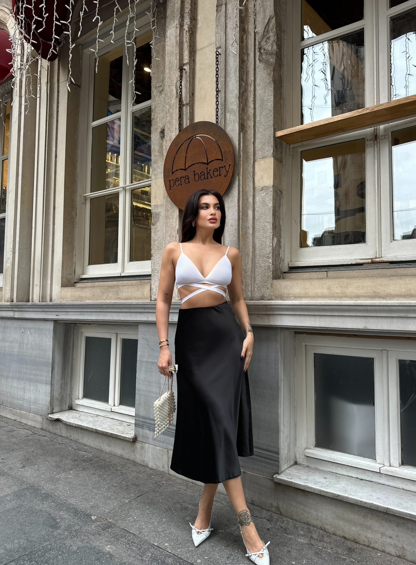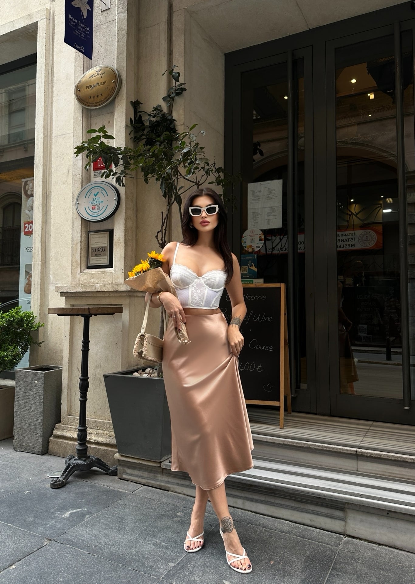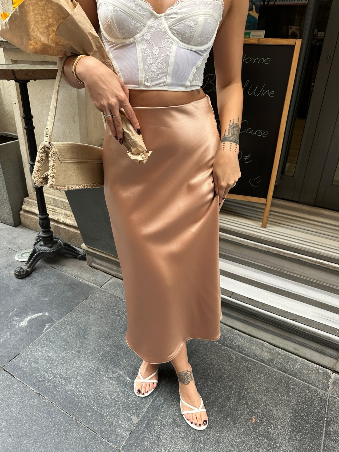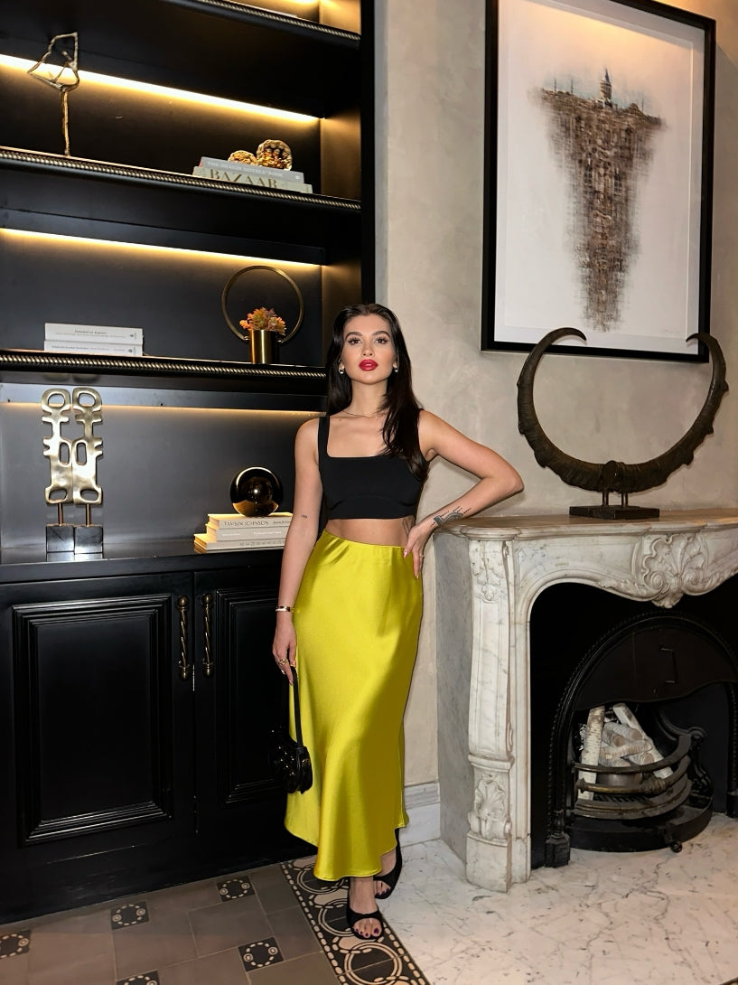 Take on your weekend the right way with this statement satin midaxi skirt. This skirt is made from a satin material with a midaxi length, this is everything we’re loving and more. With it’s figure-hugging fit this maxi skirt is sure to hug you in all the right places. To complete the look style this seamlessly with a black crop top, boots and shoulder bag for a look that will secure you all the likes.